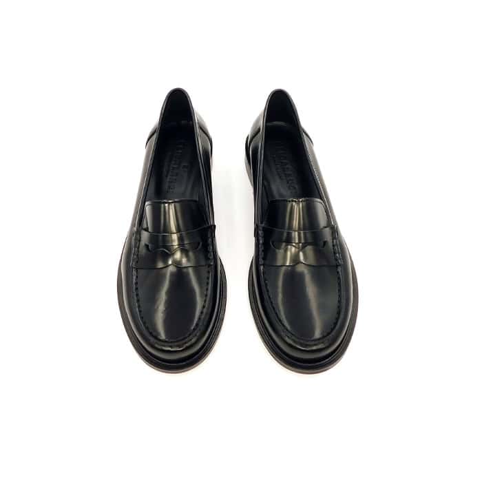 Mocassino in vitello spazzolato. Interno in pelle. Tacco 2 cm.