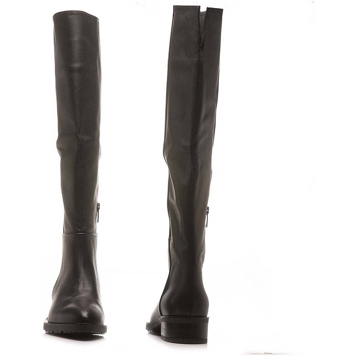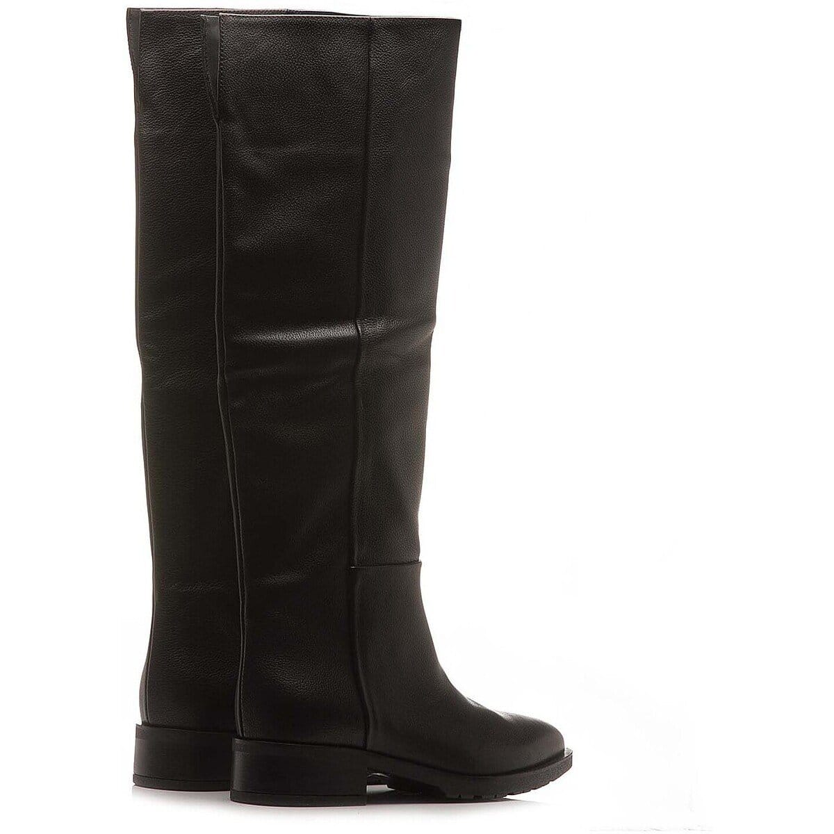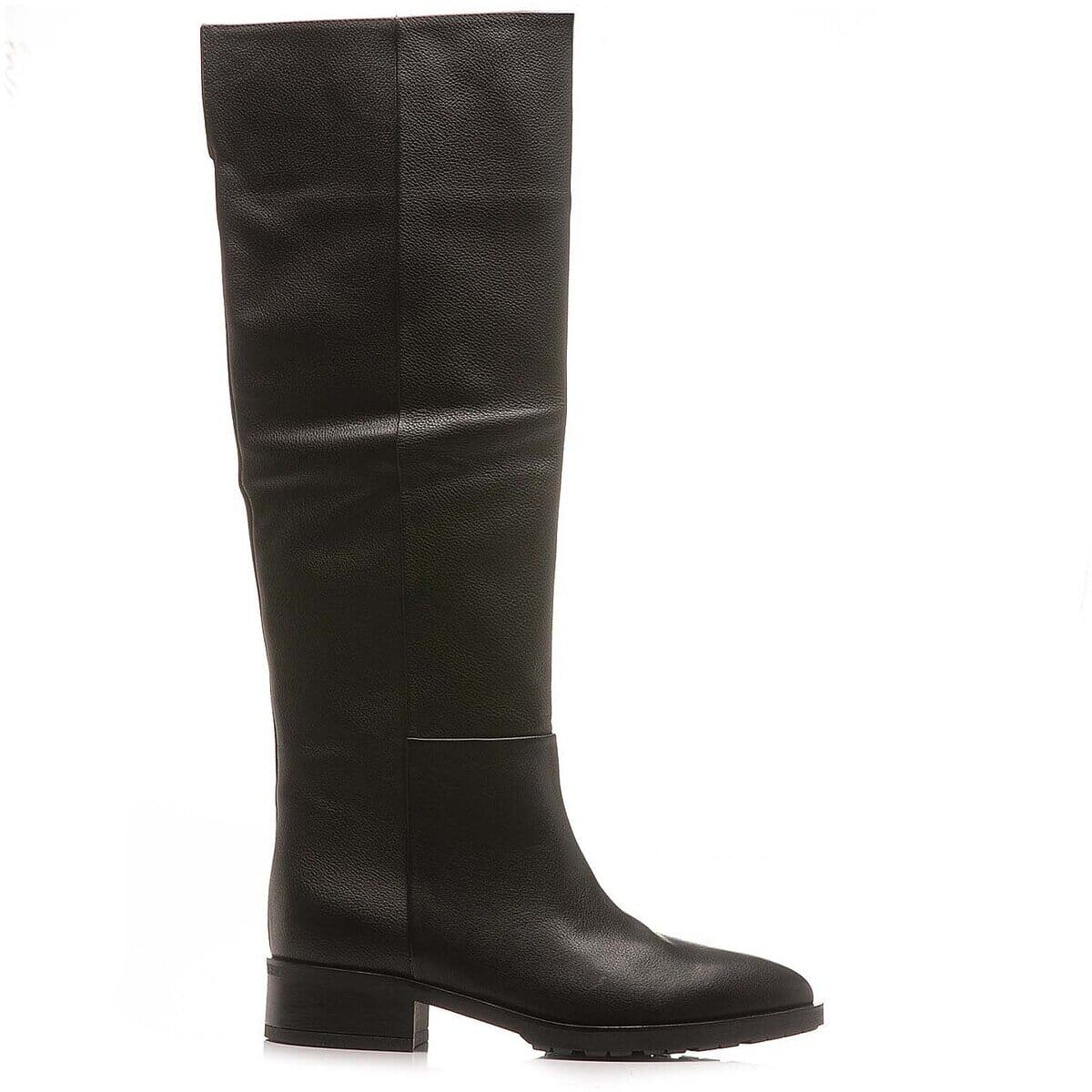 Stivale alto al ginocchio in vitello. Fondo in cuoio con gomma sottile. Interno in pelle. Tacco 2cm. Forma texano.