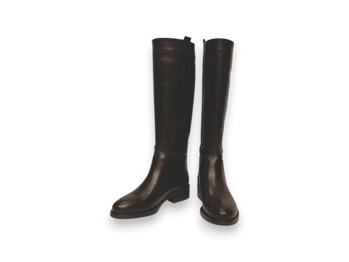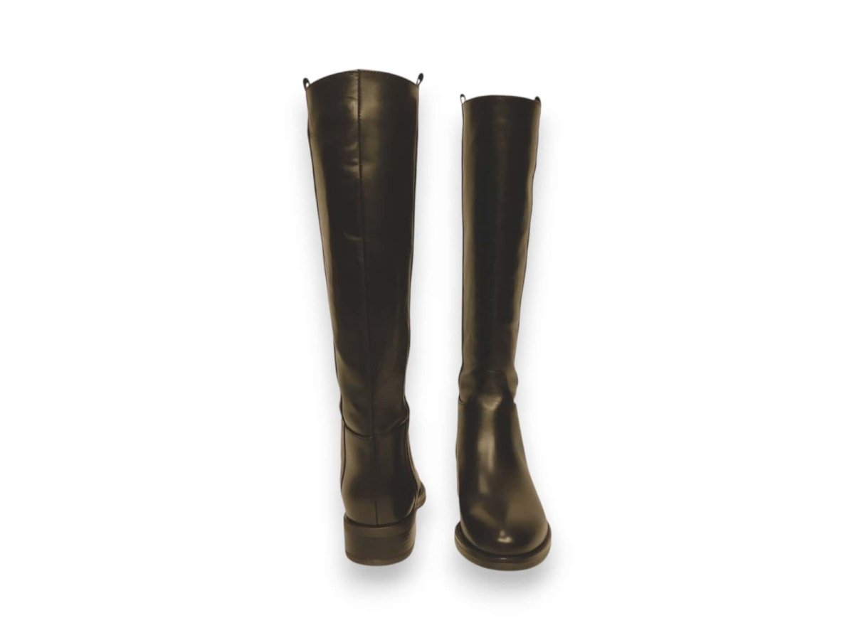 Stivale a tubo. Tomaia in pelle liscia. Fondo in cuoio e gomma antiscivolo. Tacco 2 cm. Interno in pelle.