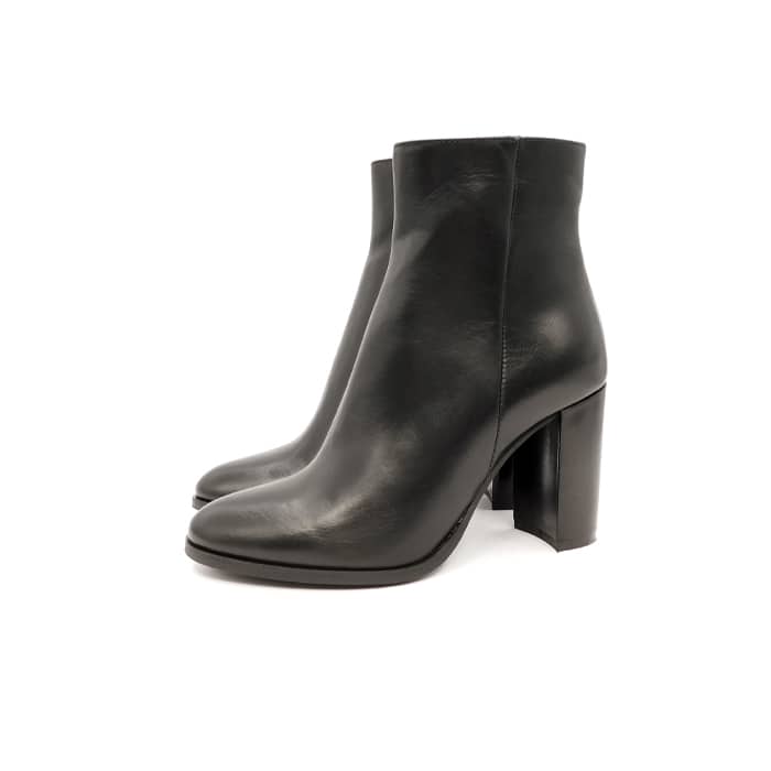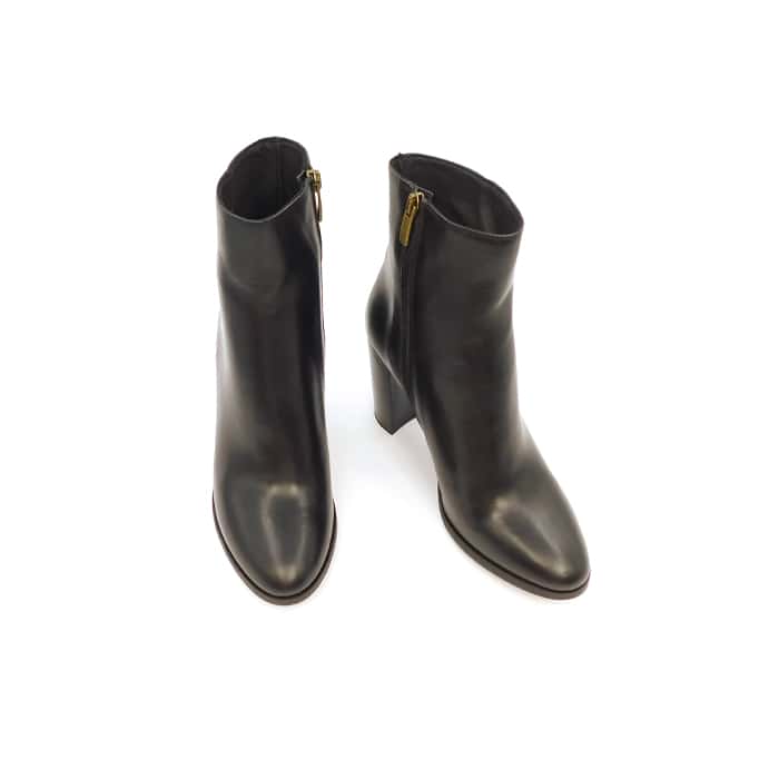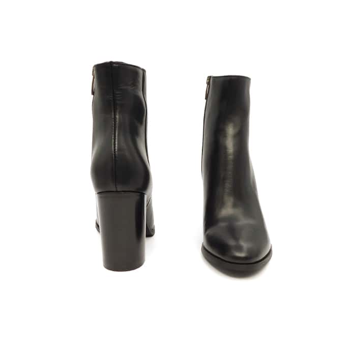 Tronchetto in vitello nero con zip laterale. Interno in pelle. Tacco 9 cm.