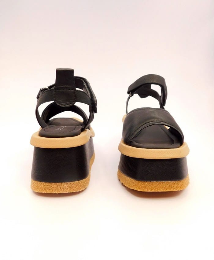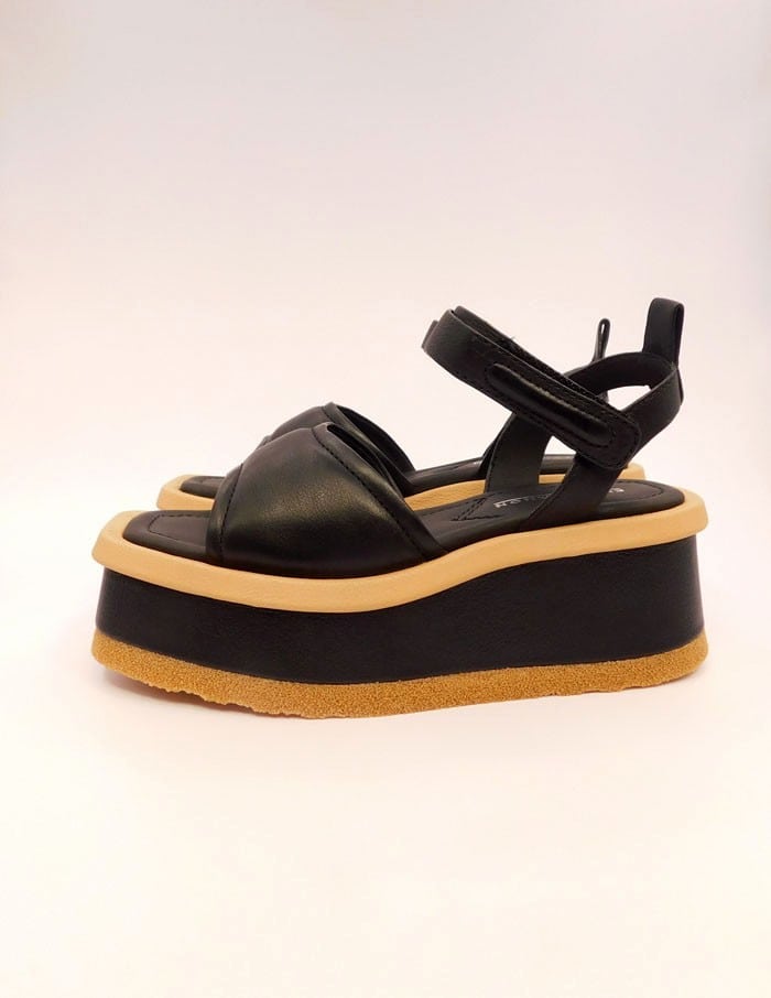 Sandalo zeppa in vitello. Interno in pelle. Fondo zeppa 10 cm in cuoio.