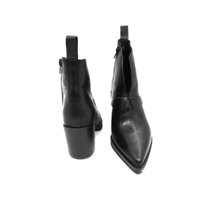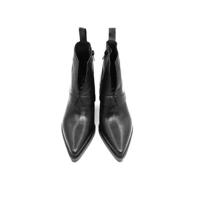 Tronchetto Texano scollato nero. Vitello nero. Tacco 6 cm. Interno in pelle. Fondo in cuoio