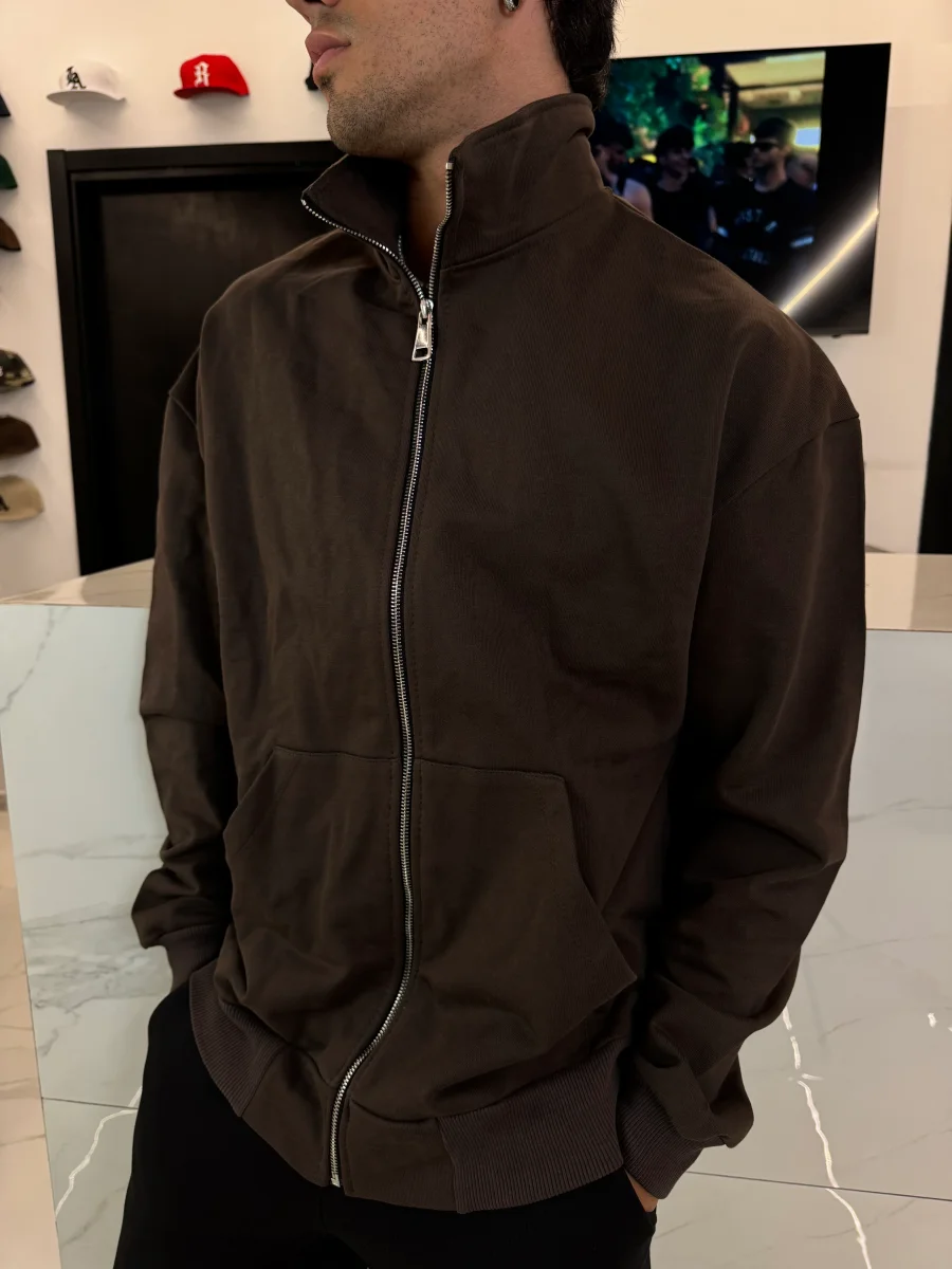 Felpa Collo Alto Zip Garzata Marrone Duca Homme | Caldo Streetwear