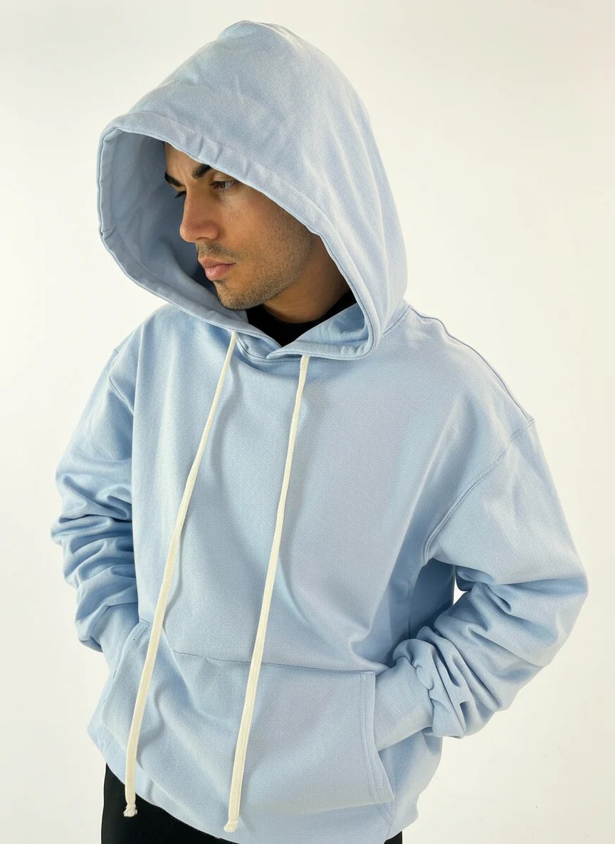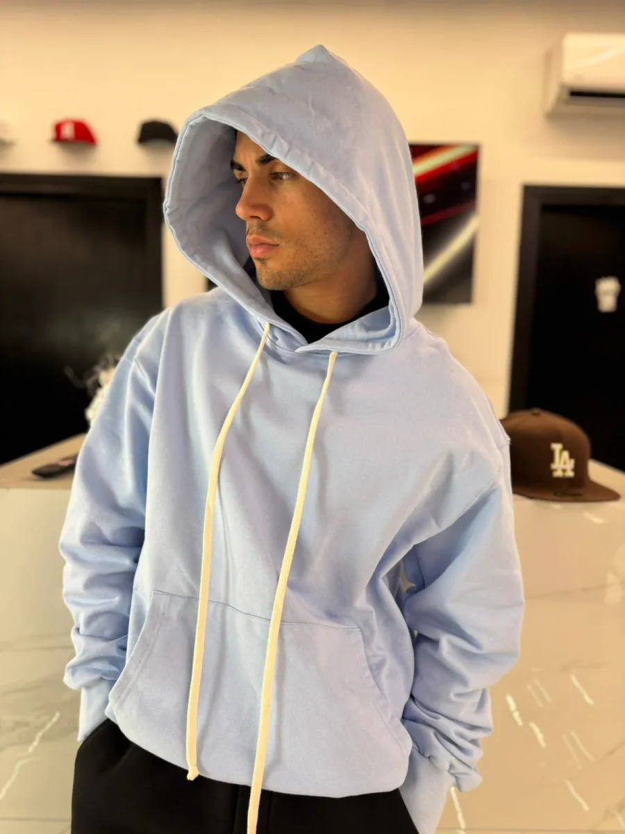 Felpa con Cappuccio Oversize Celeste Uomo – Duca Homme Basic