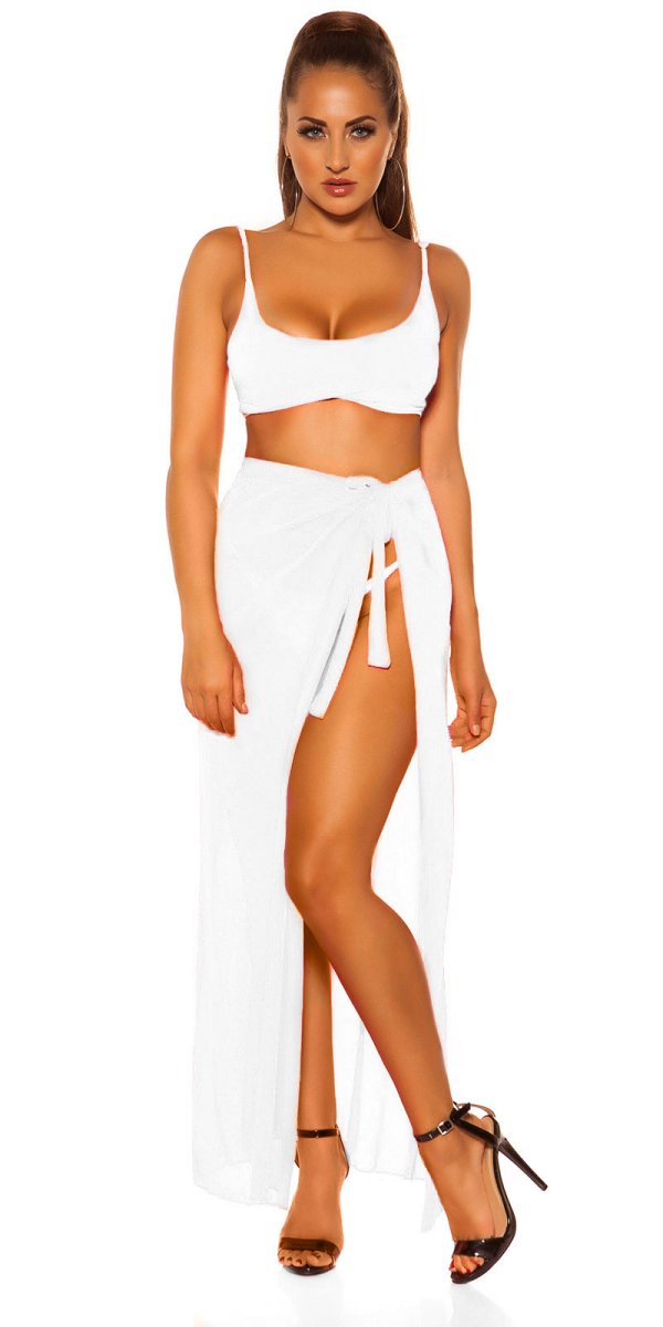 Bikini 3 pezzi, con reggiseno, perizoma e pareo CB320 bianco