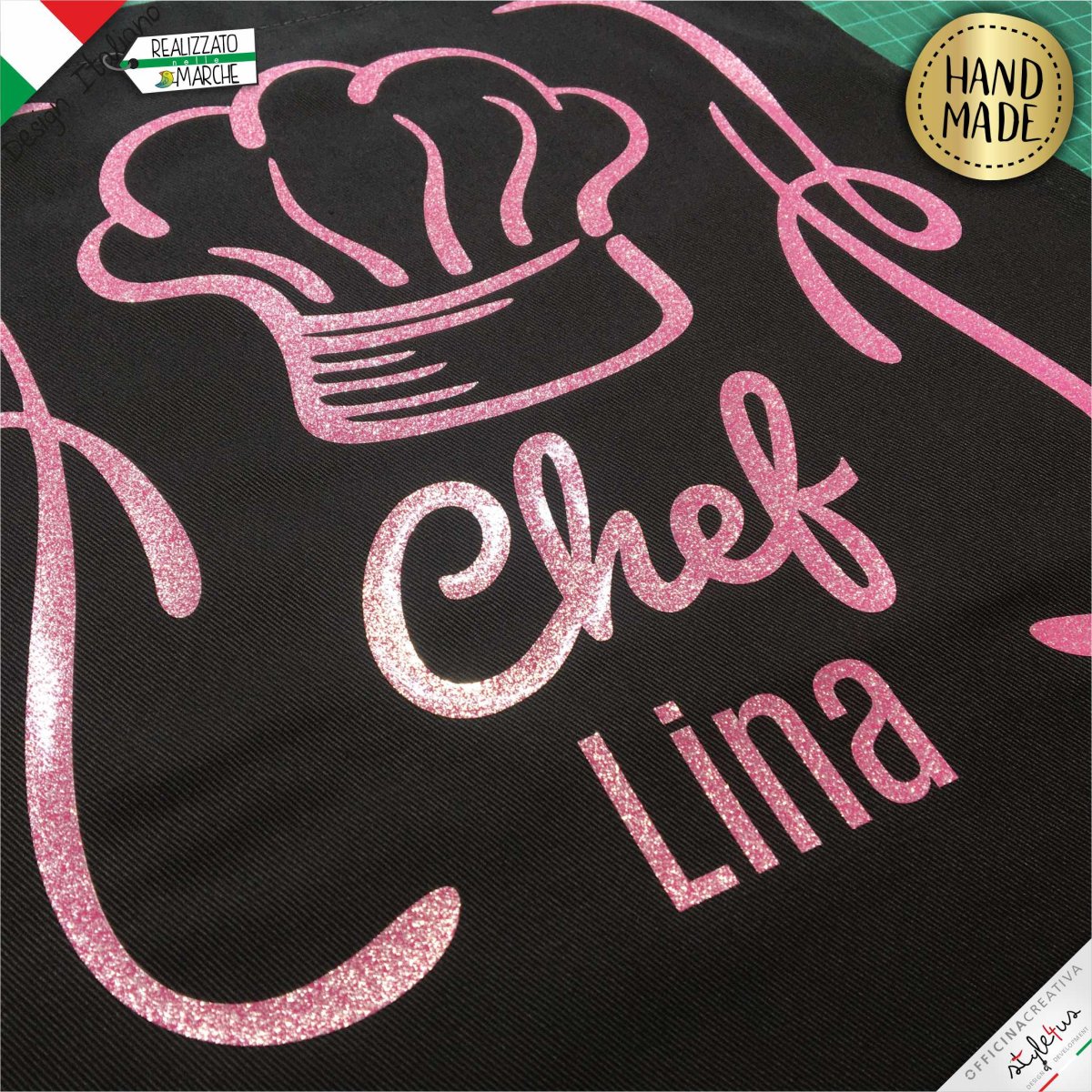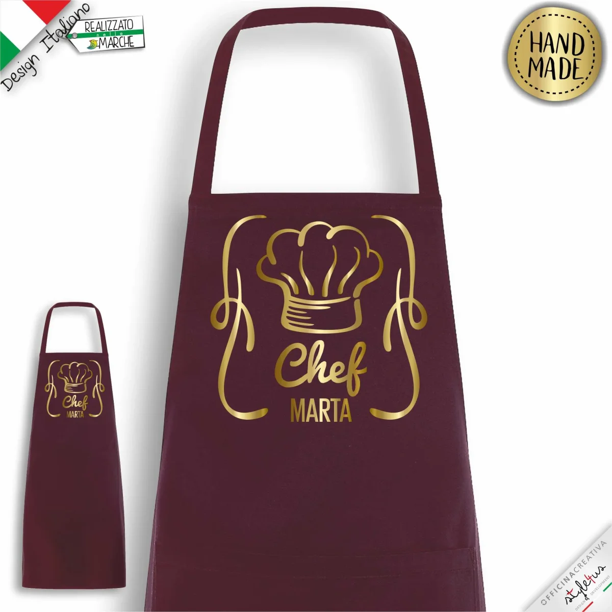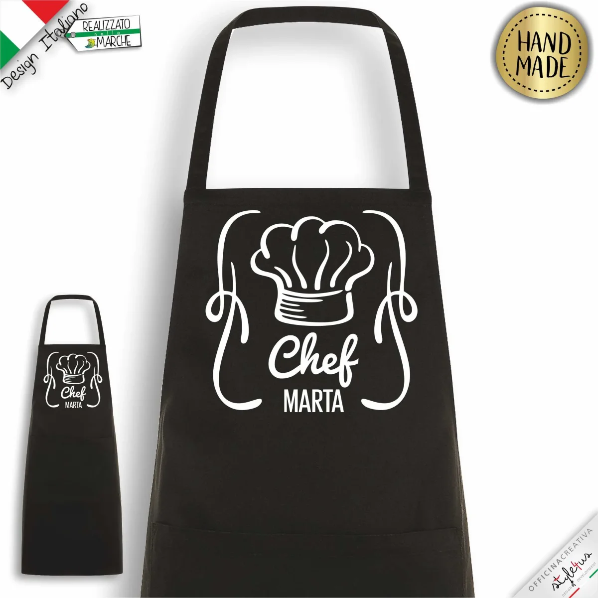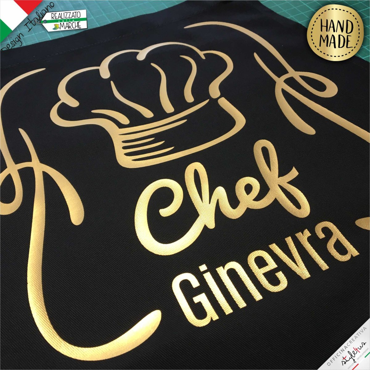 Grembiule da cucina PERSONALIZZATO stampato con materiali da intaglio e personalizzato con il nome che desideri. Scegli il COLORE del grembiule, il colore della LAVORAZIONE scrivi il NOME che vuoi stampato