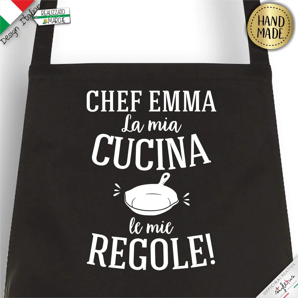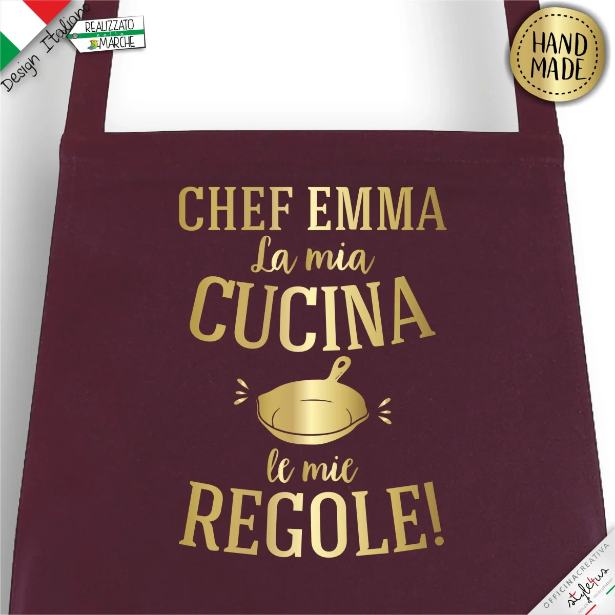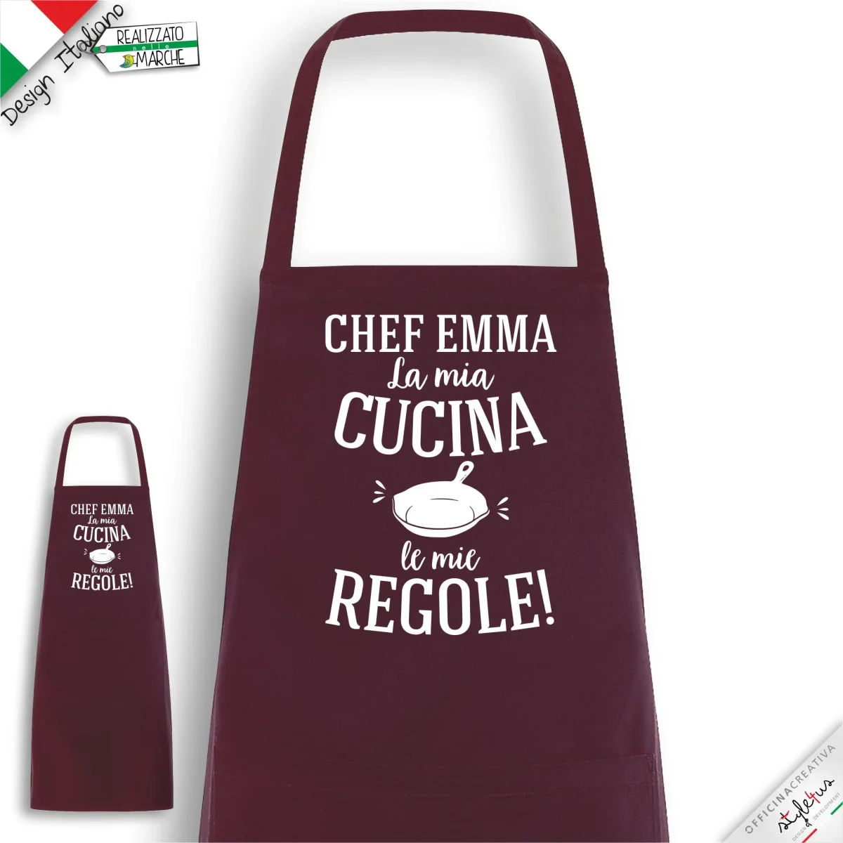 Grembiule da cucina PERSONALIZZATO stampato con materiali da intaglio e personalizzato con il nome che desideri. Scegli il COLORE del grembiule, il colore della LAVORAZIONE scrivi il NOME che vuoi stampato