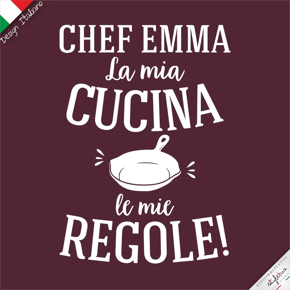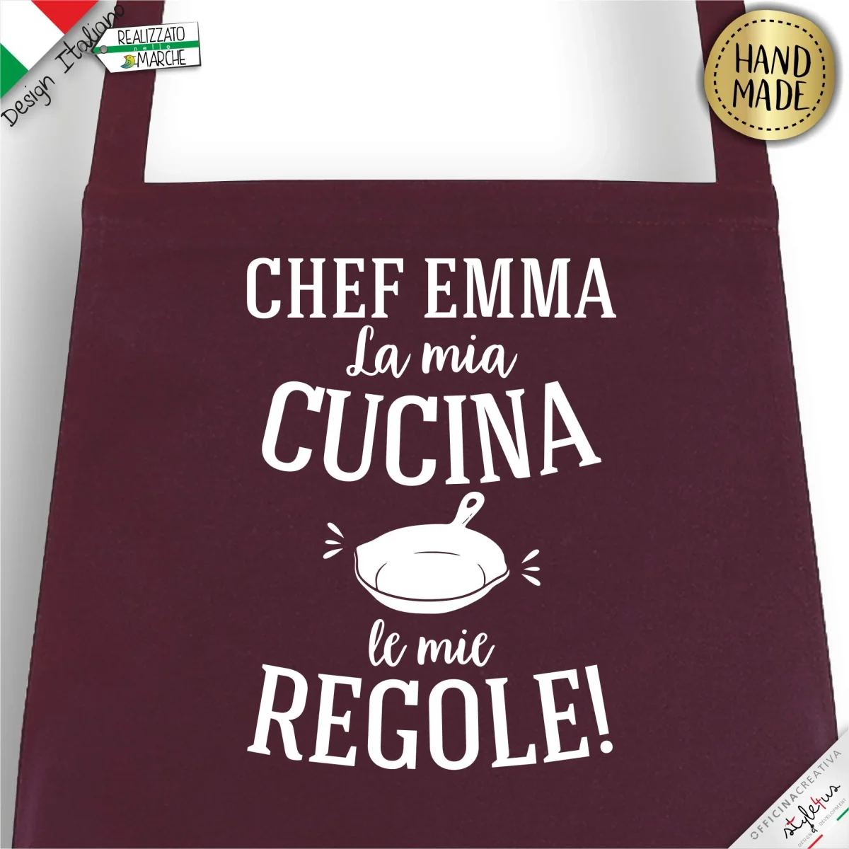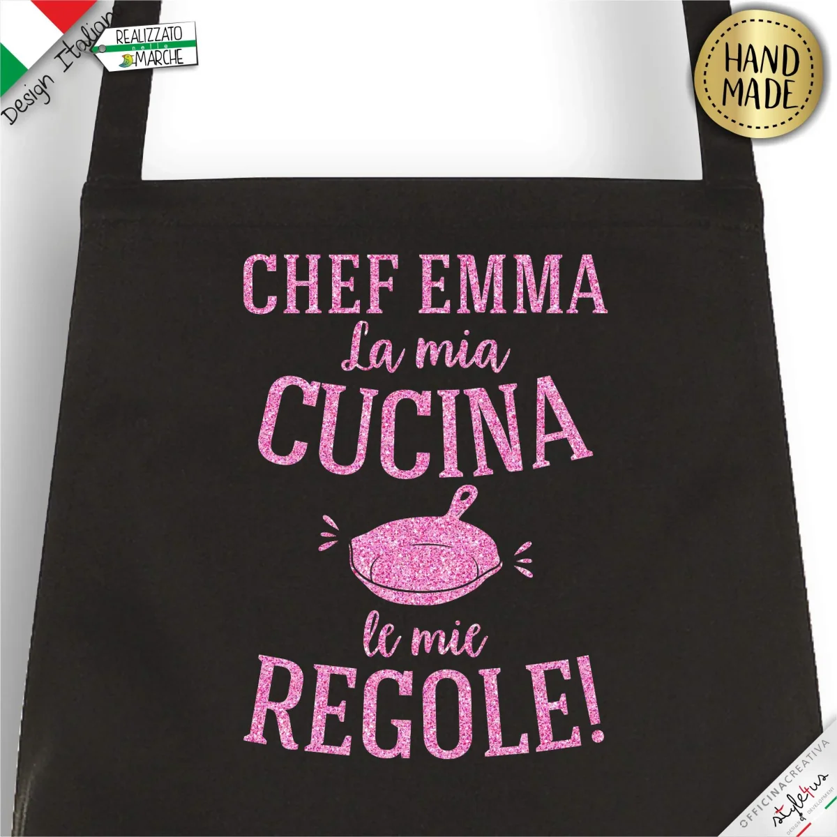 Grembiule da cucina PERSONALIZZATO stampato con materiali da intaglio e personalizzato con il nome che desideri. Scegli il COLORE del grembiule, il colore della LAVORAZIONE scrivi il NOME che vuoi stampato