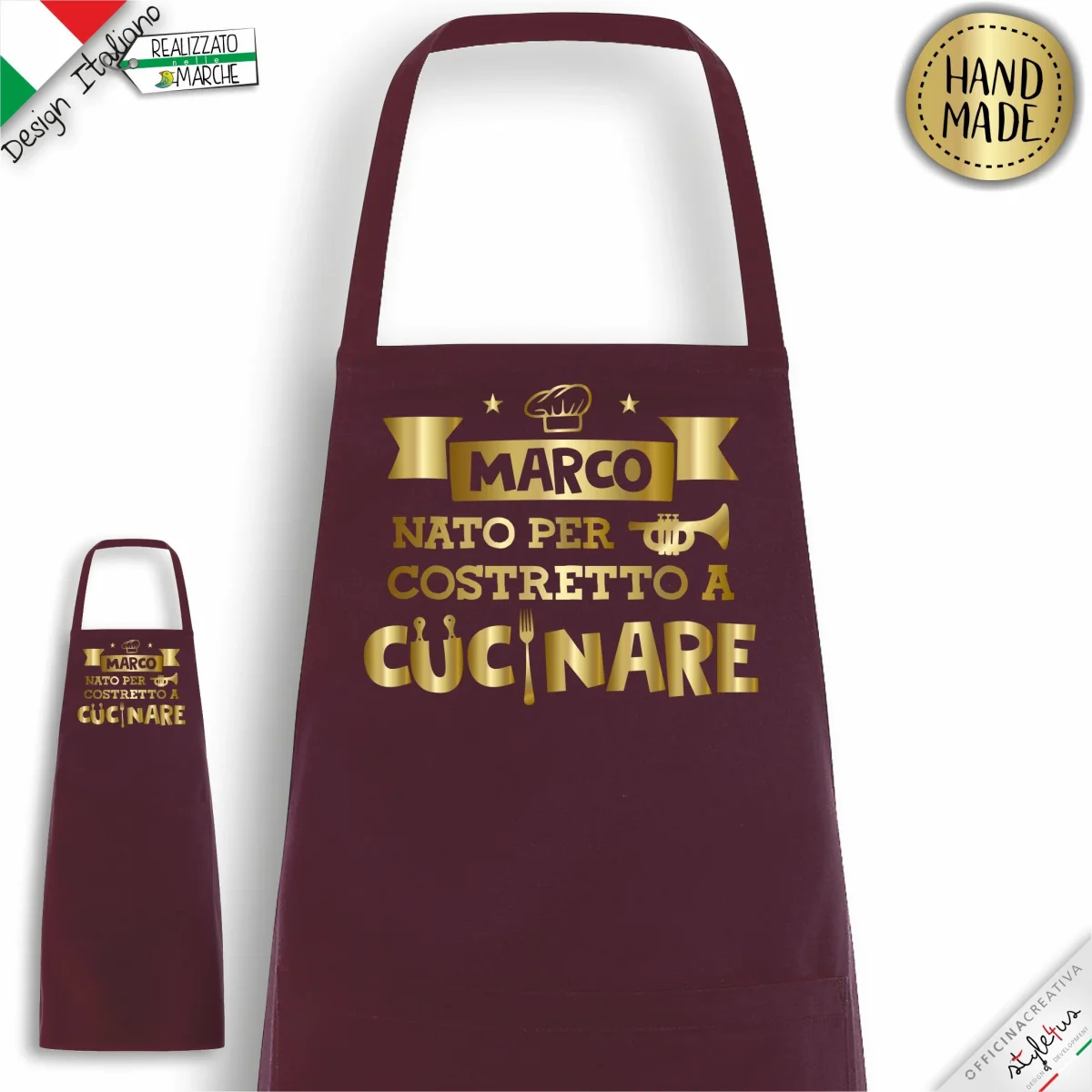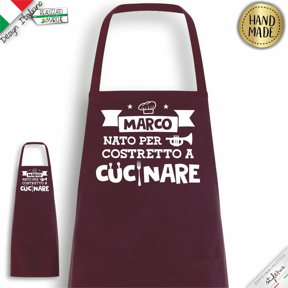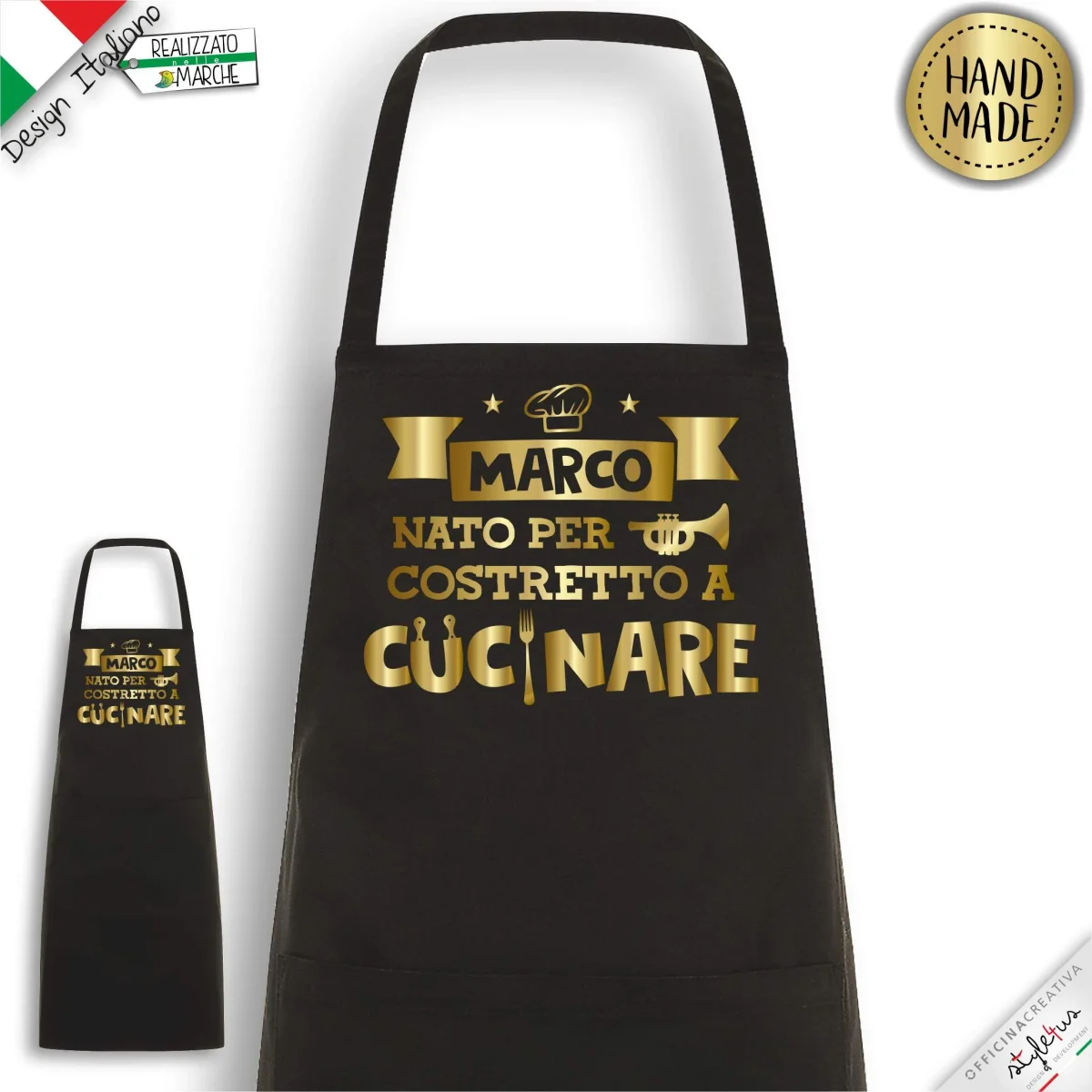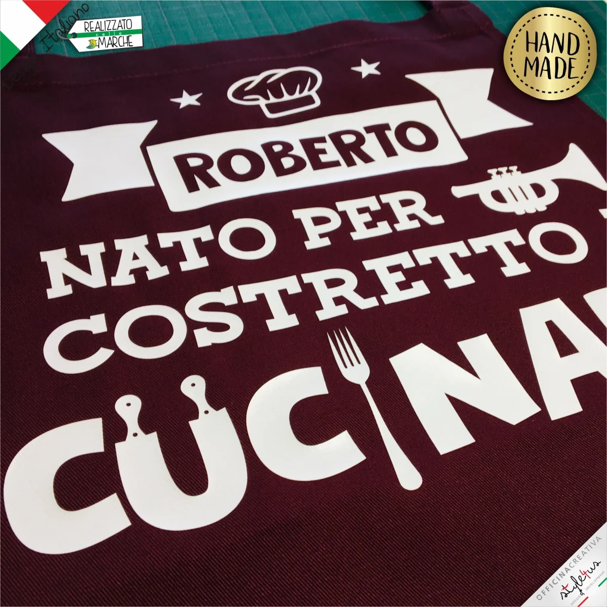 Grembiule da cucina PERSONALIZZATO stampato con materiali da intaglio e personalizzato con il nome che desideri. Disegnato e Lavorato con amore a Sarnano, piccolo paesino marchigiano del centro Italia Scegli il COLORE del grembiule, il colore della LAVORAZIONE scrivi il NOME che vuoi stampato