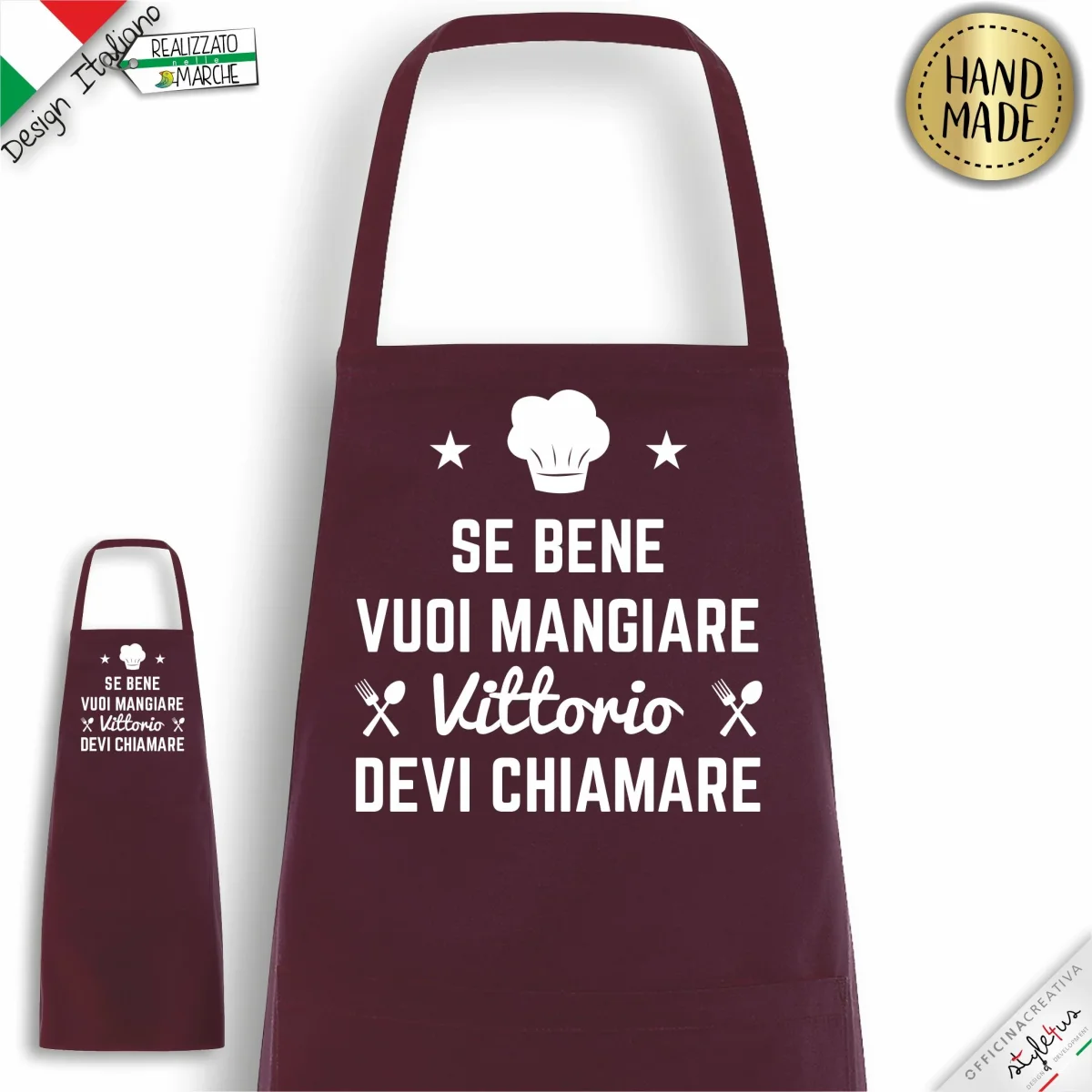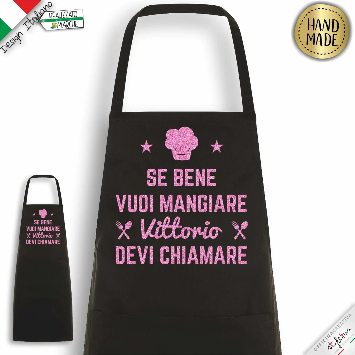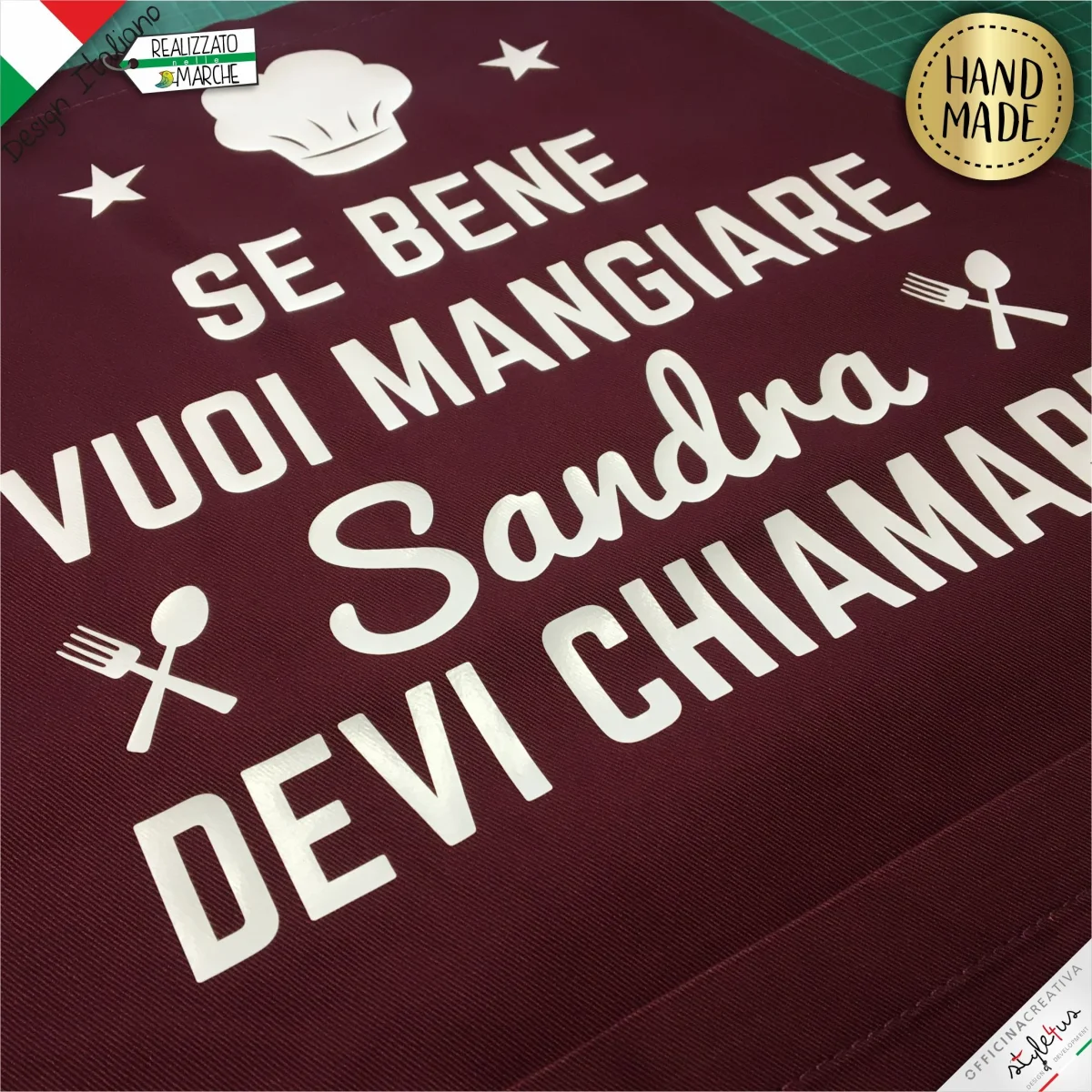 Grembiule da cucina PERSONALIZZATO stampato con materiali da intaglio e personalizzato con il nome che desideri. Scegli il COLORE del grembiule, il colore della LAVORAZIONE scrivi il NOME che vuoi stampato