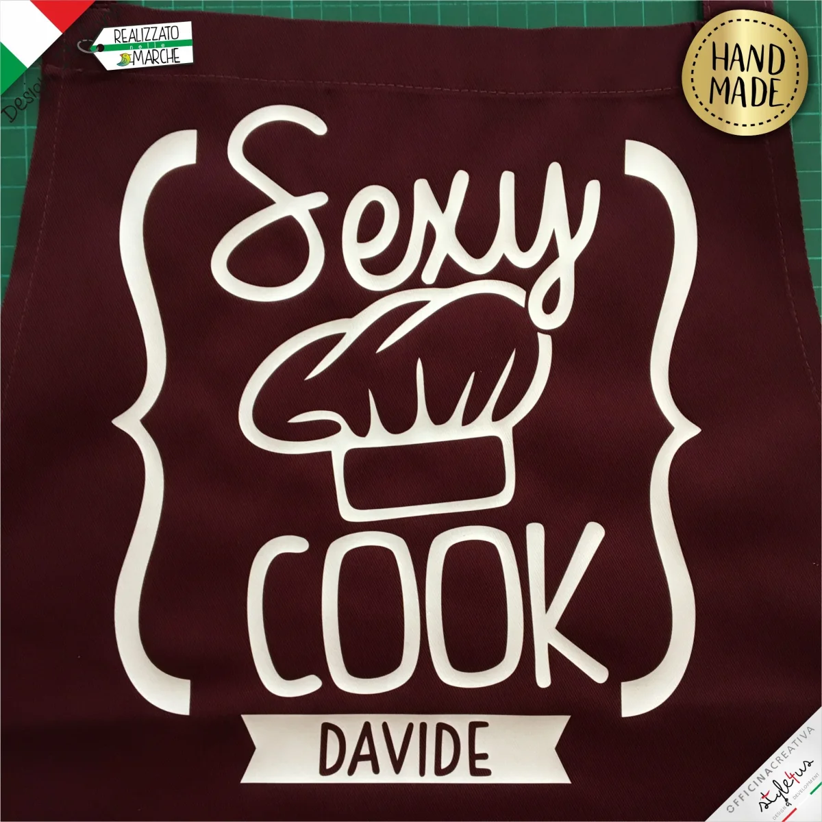 Grembiule da cucina PERSONALIZZATO stampato con materiali da intaglio e personalizzato con il nome che desideri. Disegnato e Lavorato con amore a Sarnano, piccolo paesino marchigiano del centro Italia Scegli il COLORE del grembiule, il colore della LAVORAZIONE scrivi il NOME che vuoi stampato