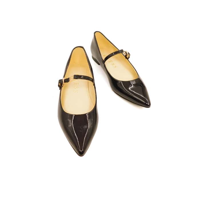 Ballerina in vernice con cinturino regolabile. Interno in pelle. Tacco 1 cm.
