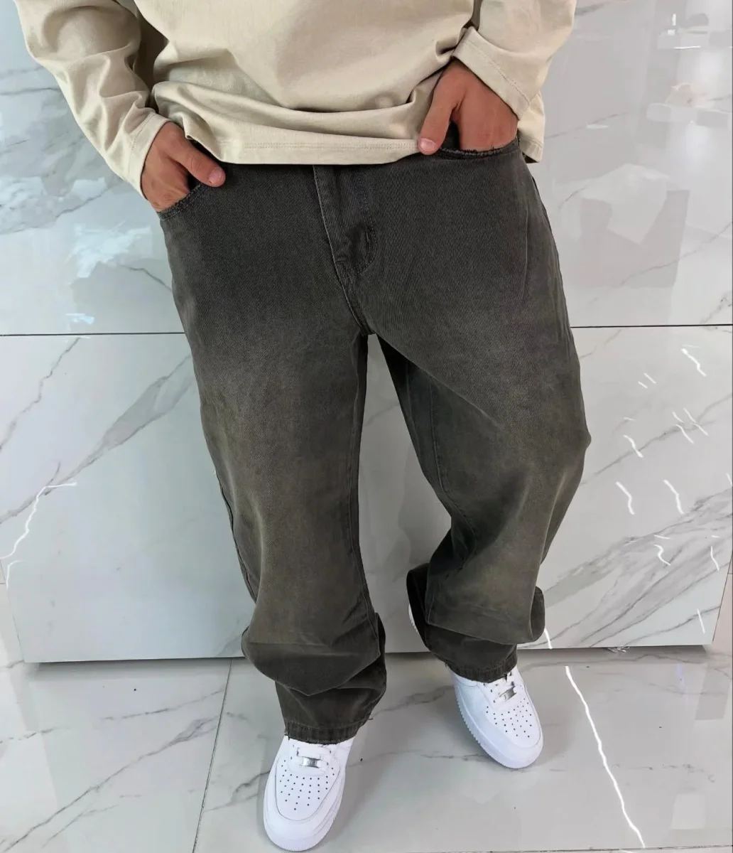 Jeans baggy grigio slavato uomo Duca Homme, il capo perfetto per chi cerca uno stile vintage contemporaneo. Realizzati in denim con effetto slavato grigio, questi jeans presentano una vestibilitร loose fit baggy minimal senza strappi, seguendo le tendenze streetwear 2025.