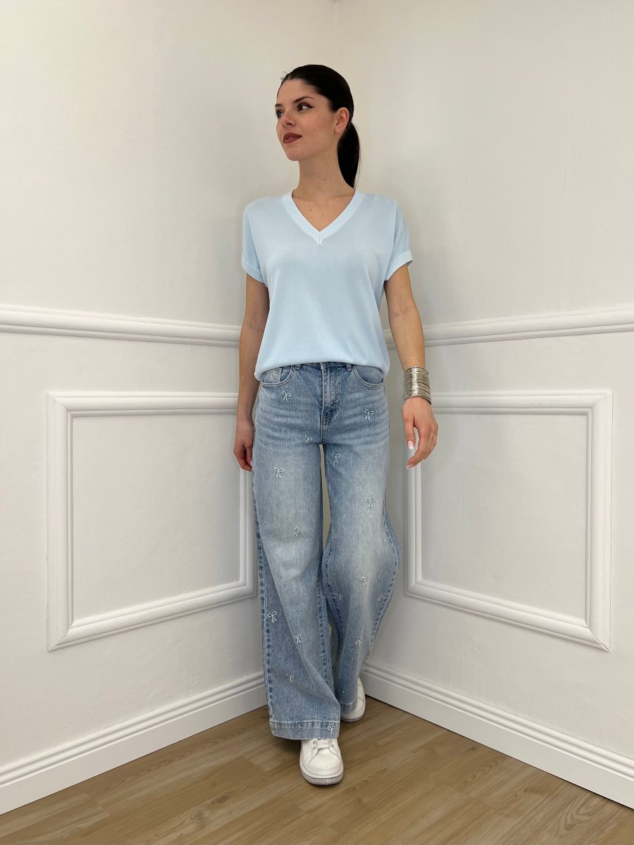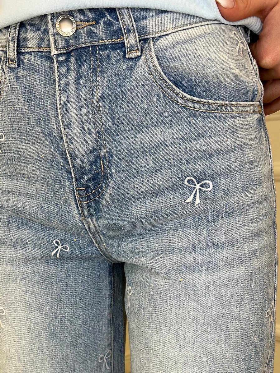 Jeans Con Fiocchi Ricamati e Strass 5354 Azzurro