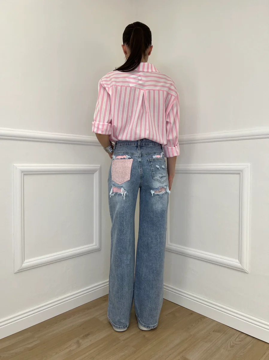 Jeans Con Tasca Strass 1960 Rosa