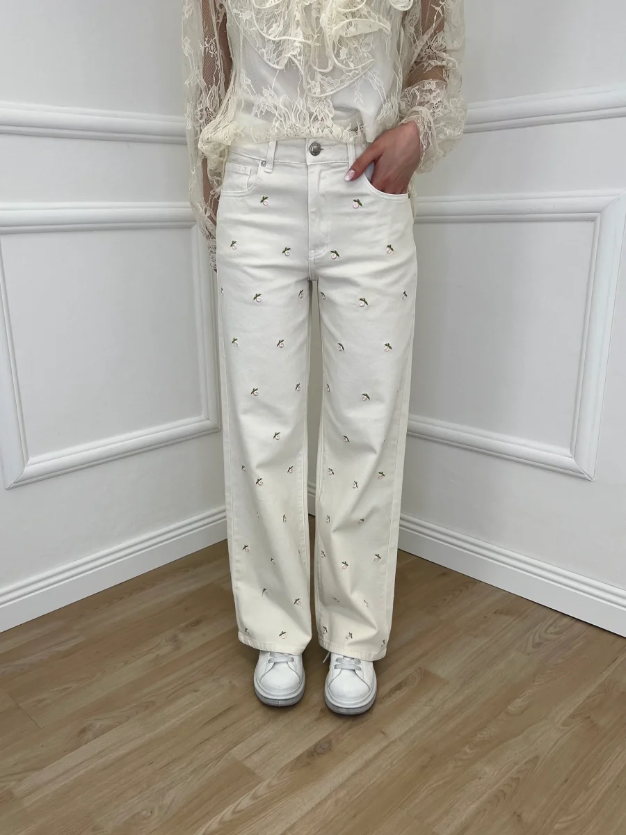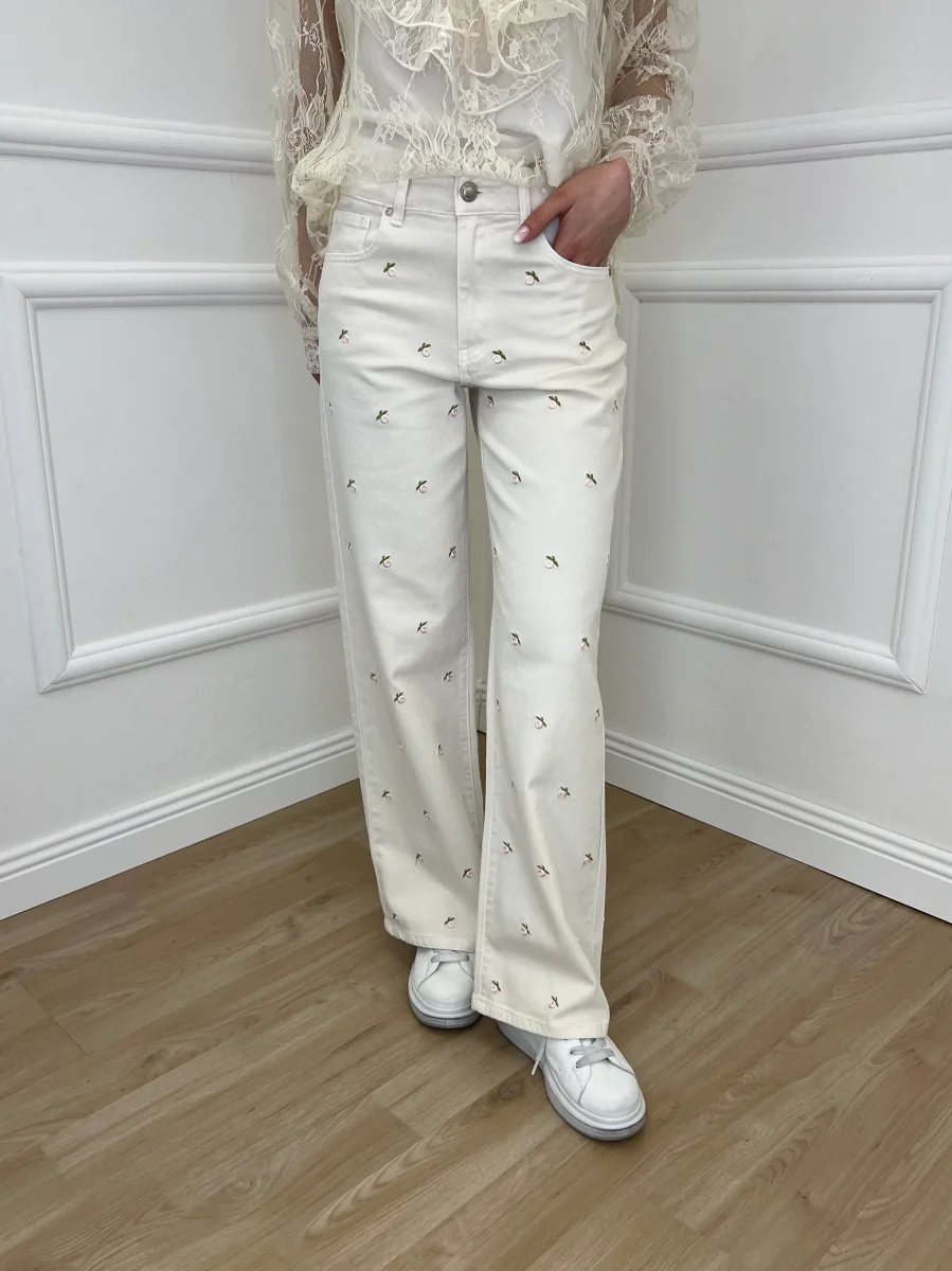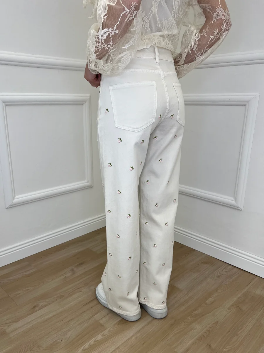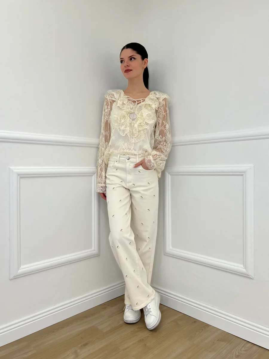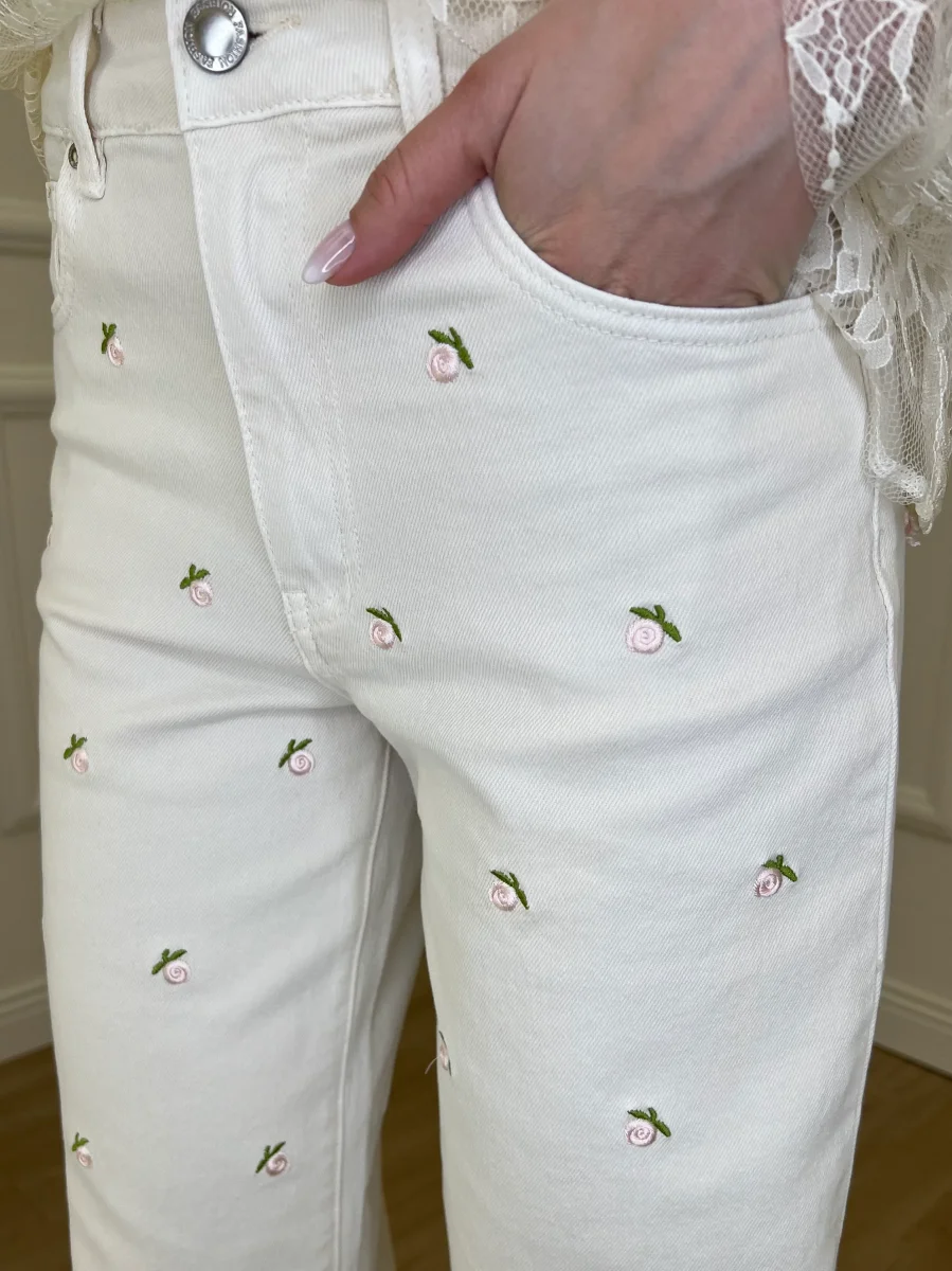 Jeans Fiori Ricamati 5387 Panna