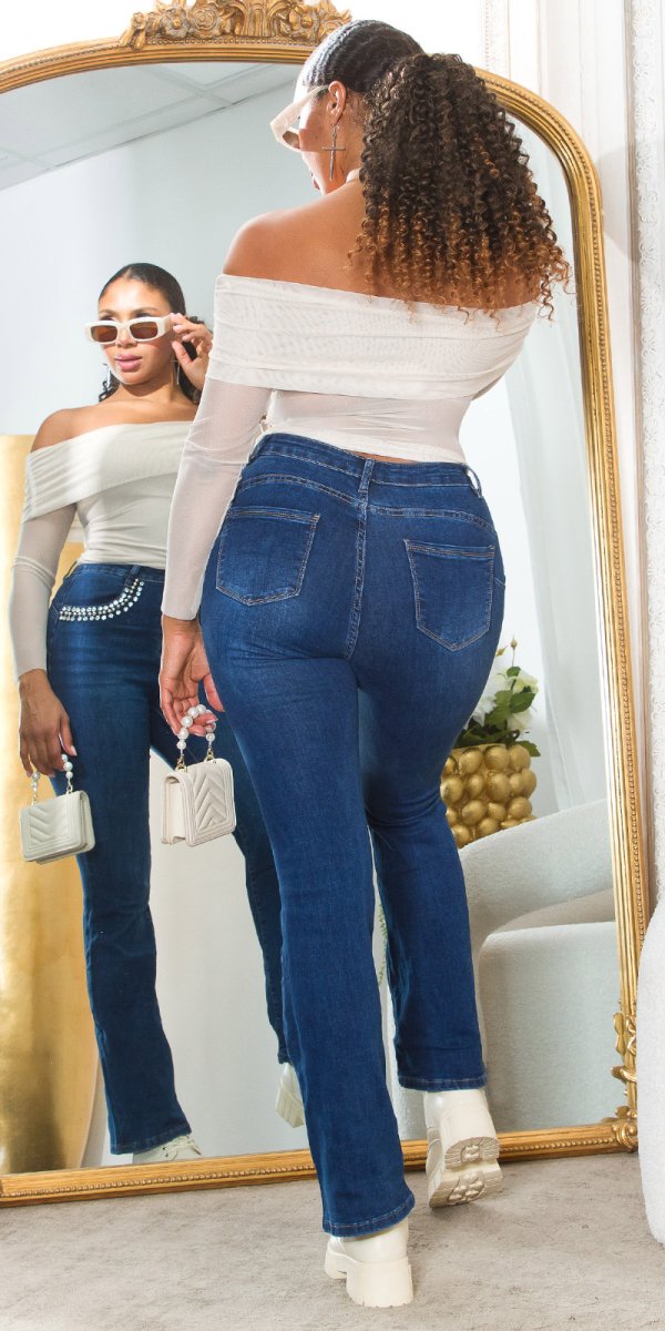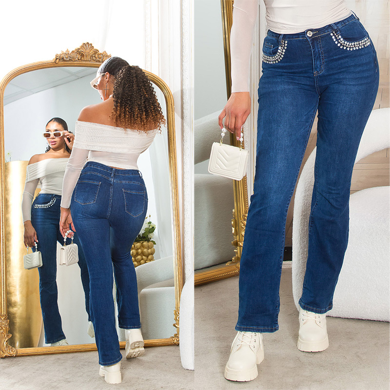 Jeans a vita alta con dettagli glitterati