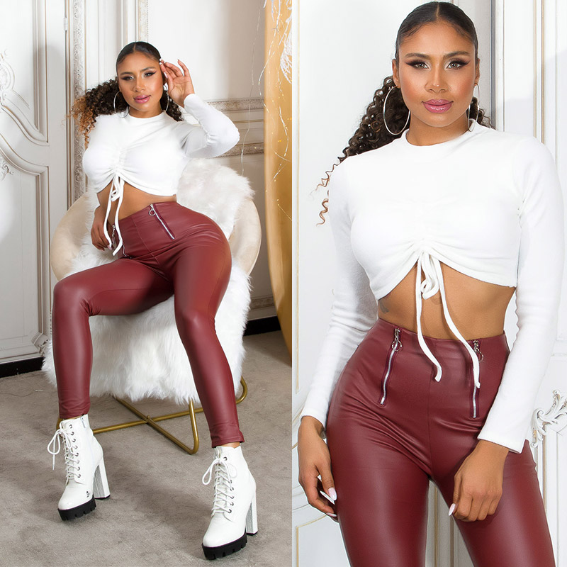 Completo Top Corto + Pantaloni in pizzo SET022 beige