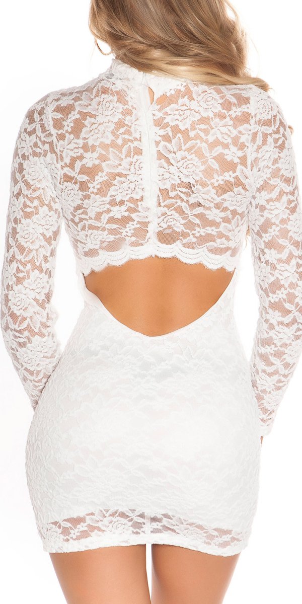 Miniabito sexy con schiena scoperta in pizzo AC563 bianco