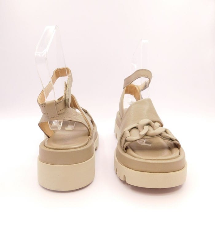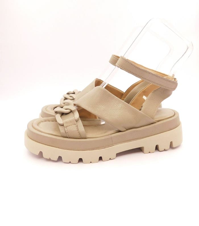 Sandalo in vitello con catena. Interno in pelle. Fondo carrarmato 2 cm in gomma.