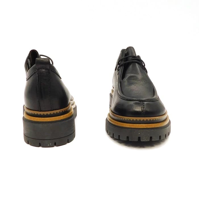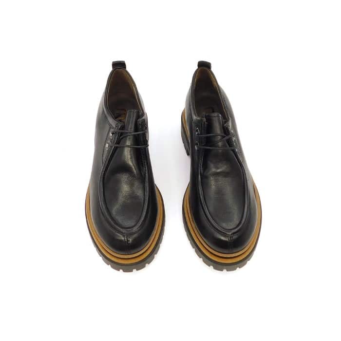 Scarpa allacciata in vitello nero con cucitura alla norvegese. Interno in pelle. Fondo carrarmato in gomma con profili cuoio.