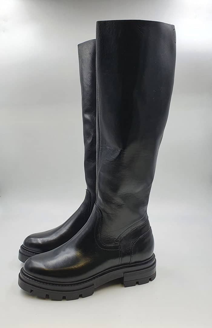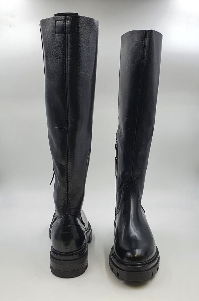 Stivale in vitello nero con zip interna. Interno in pelle. Fondo carrarmato in gomma.