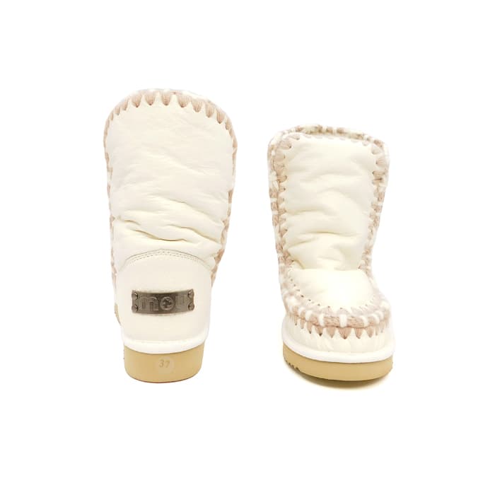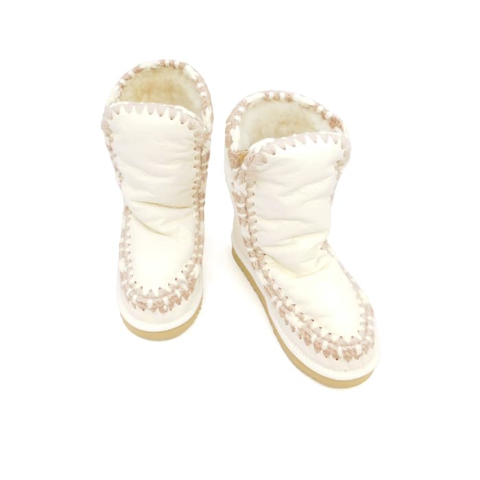 Tronchetto eskimo 24 bianco realizzato a mano in vera pelle di montone double face e dettagli in lana all’uncinetto distintivi di mou. Tallone rinforzato e suola esterna in EVA & gomma. Altezza 24cm. Regular fit.