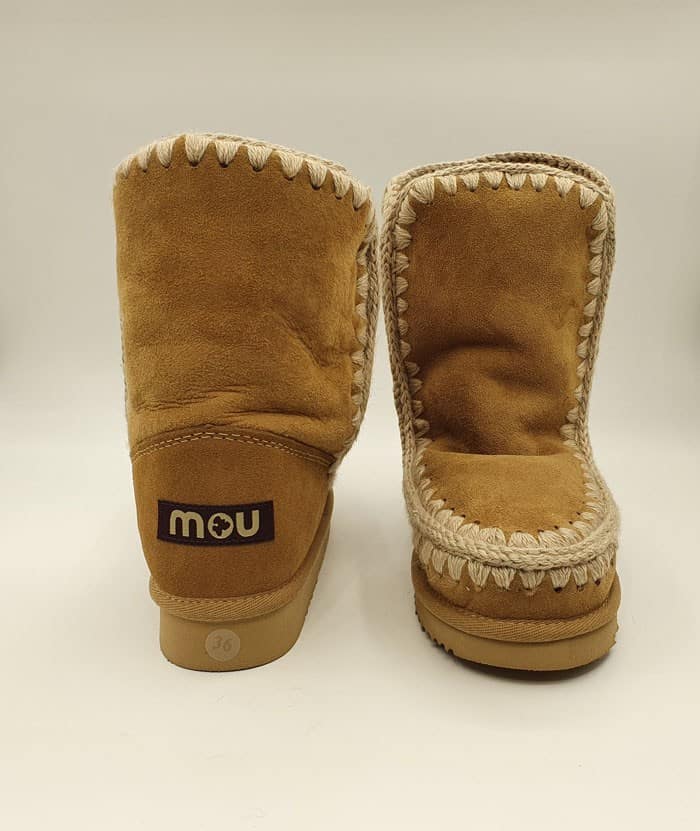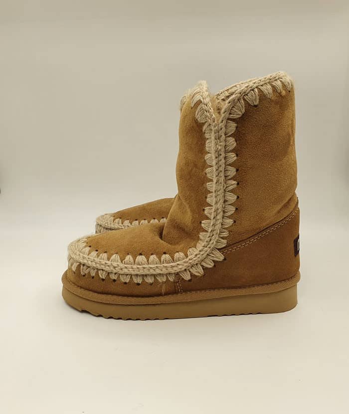 Tronchetto in camoscio con logo. Interno in montone. Fondo in gomma.