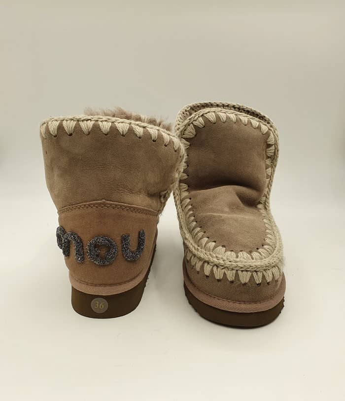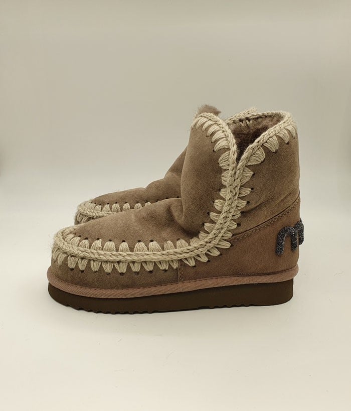 Tronchetto in camoscio con logo in metallo. Interno in montone. Fondo in gomma.