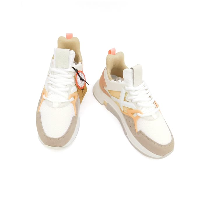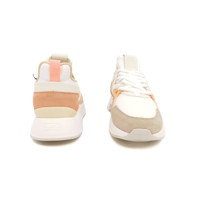 Sneakers in tessuto tecnico bianco e inserti in camoscio. Dettagli rosa e pesca. Fondo in gomma.