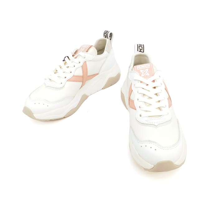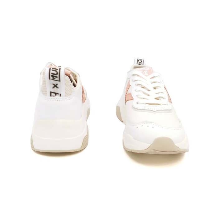 Sneaker in tessuto tecnico bianco e pelle. Inserti rosa. Fondo in gomma.