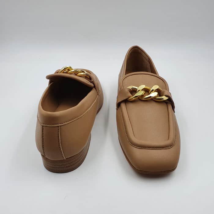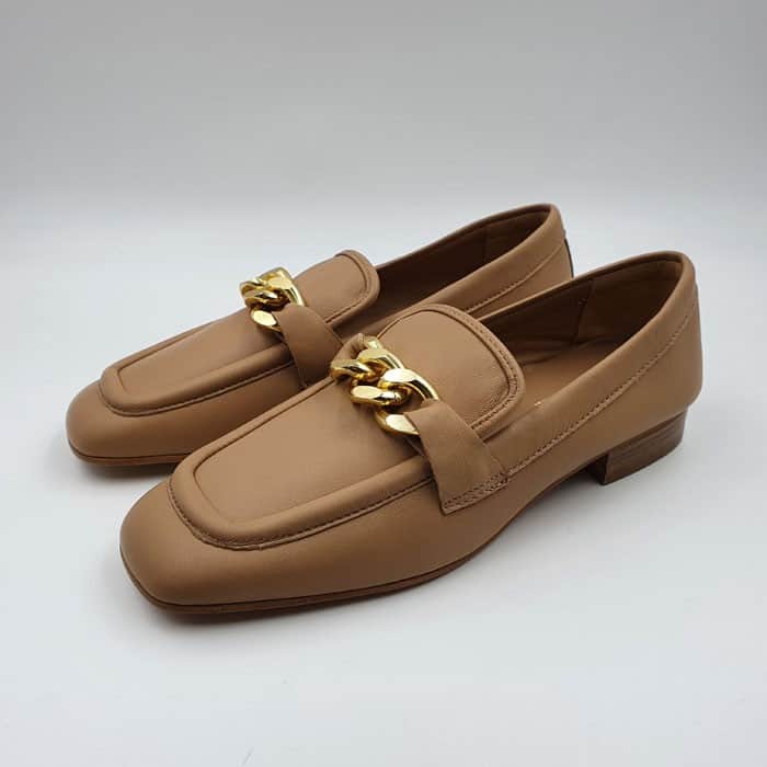 Mocassino in vitello con catena oro. Interno in pelle. Fondo 1 cm in cuoio.