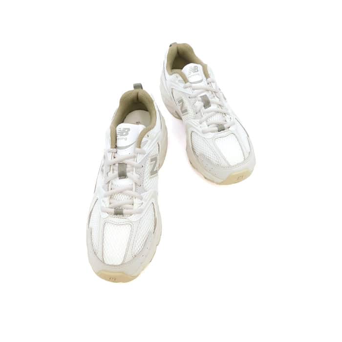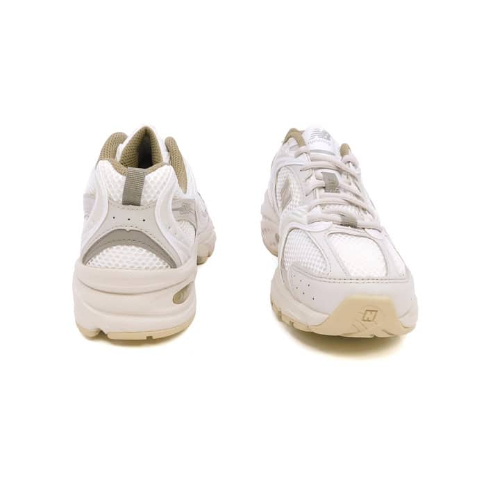 Sneaker in tessuto tecnico e vitello bianco. Inserti grigio e tortora. Fondo in gomma.