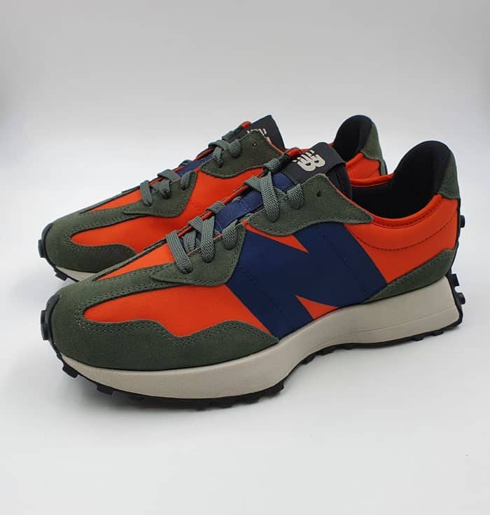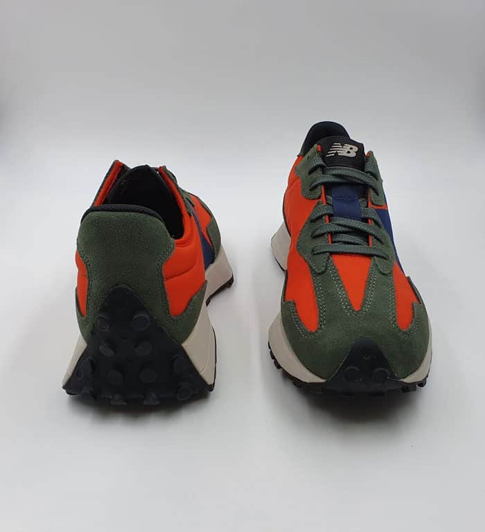 Sneaker in tessuto tecnico arancione e camoscio. Logo laterale stampato. Fondo 2 cm in gomma.