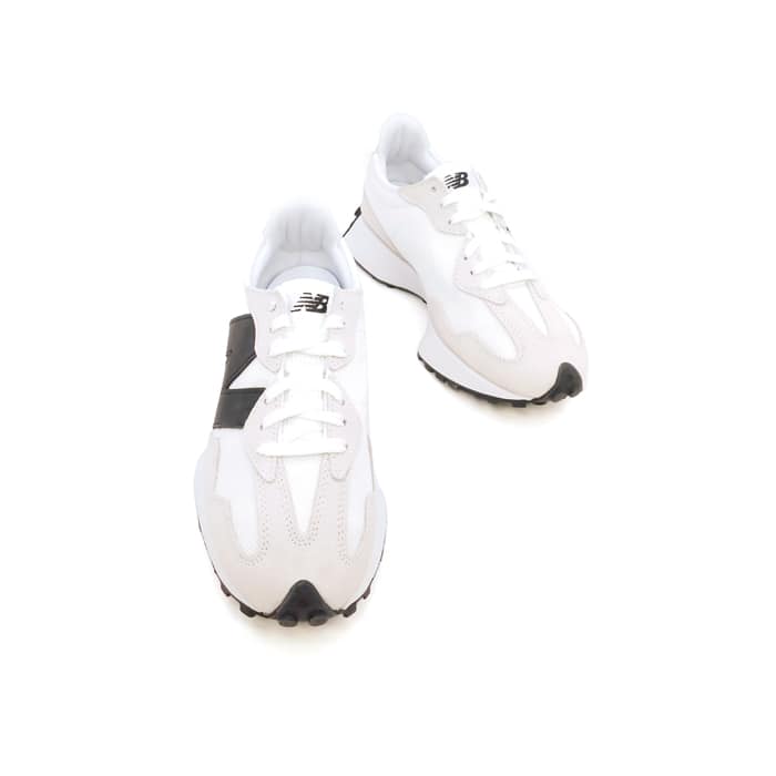 Sneakers in vitello e tessuto tecnico bianco con logo laterale nero. Fondo in gomma.