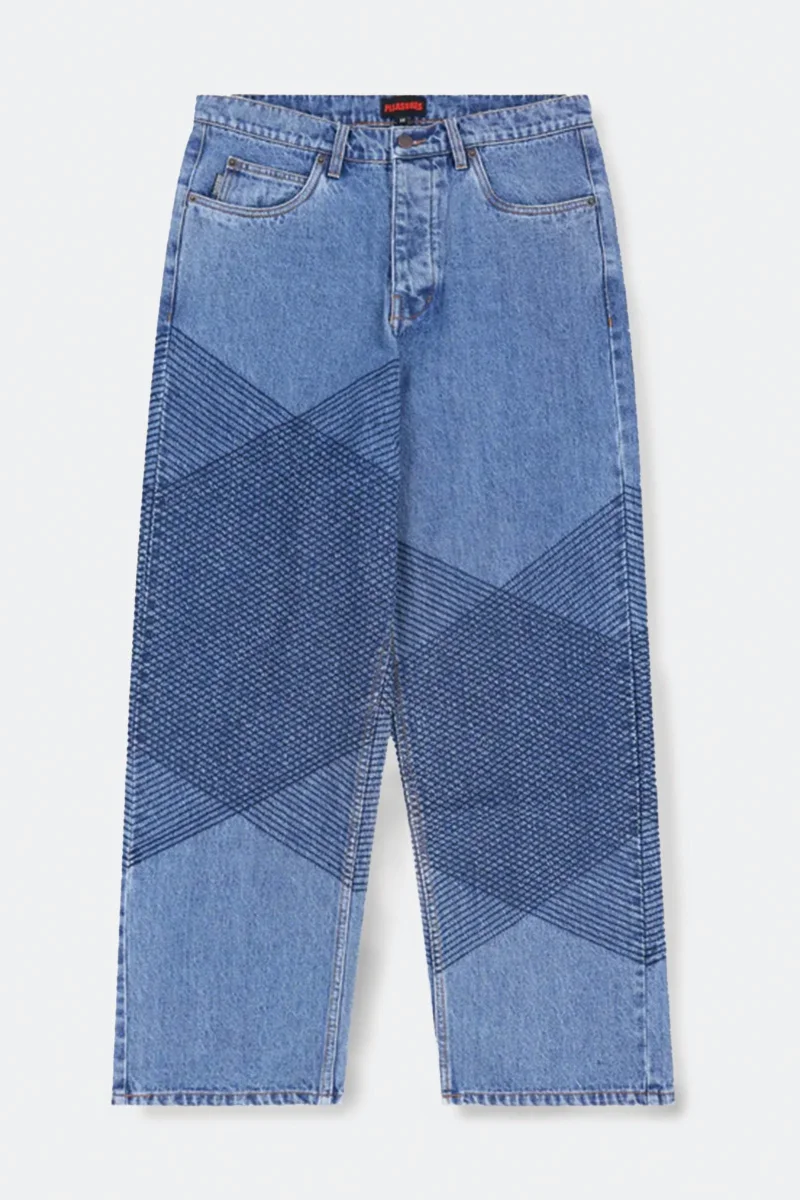 Pleasures Grid Embroidered Baggy Jeans Blu Unisex