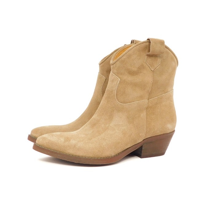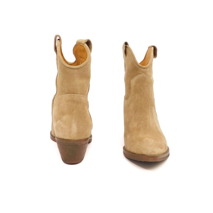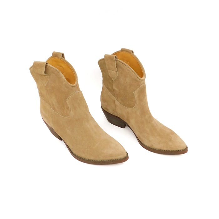 Texano in camoscio tortora. Interno in pelle. Tacco 3 cm. Fondo in cuoio. Made in Italy.