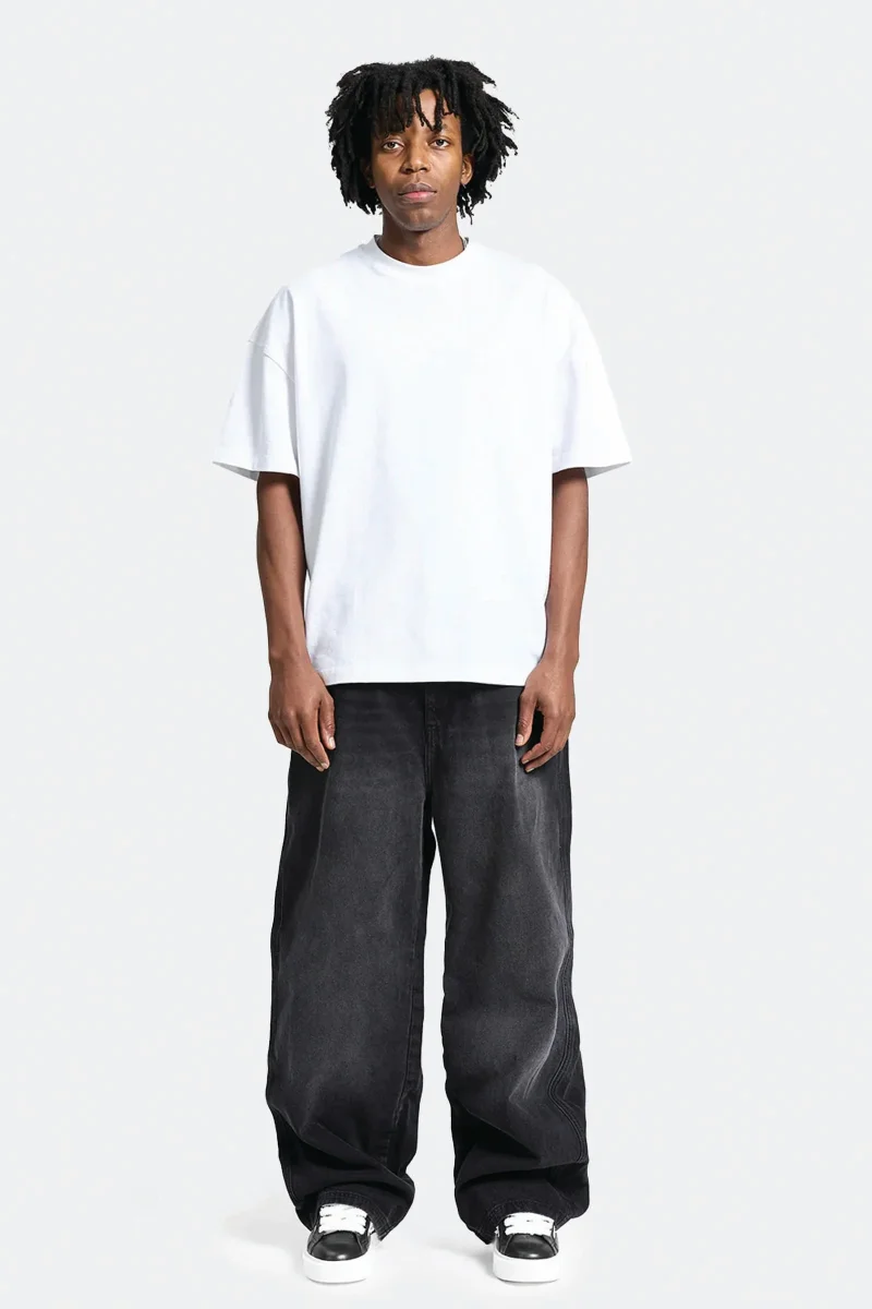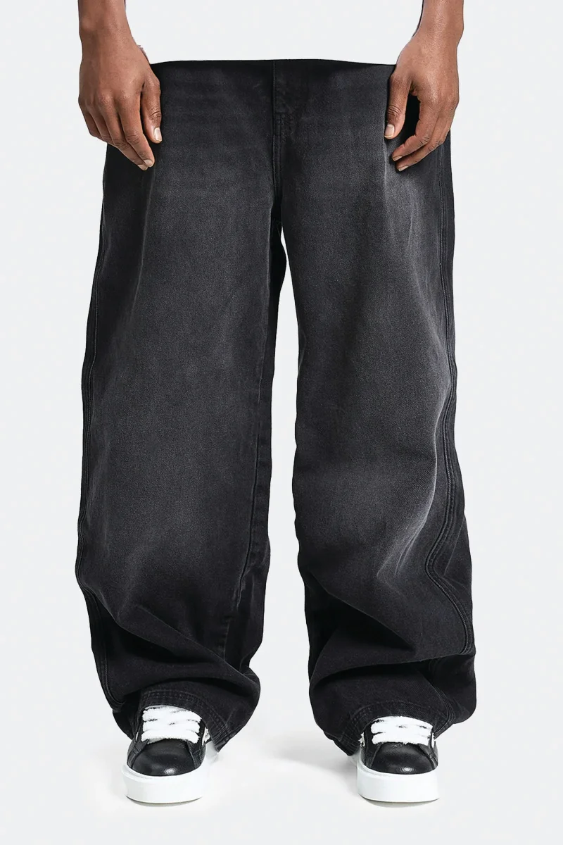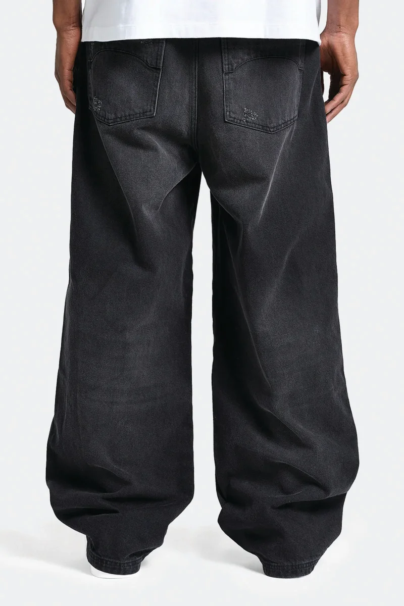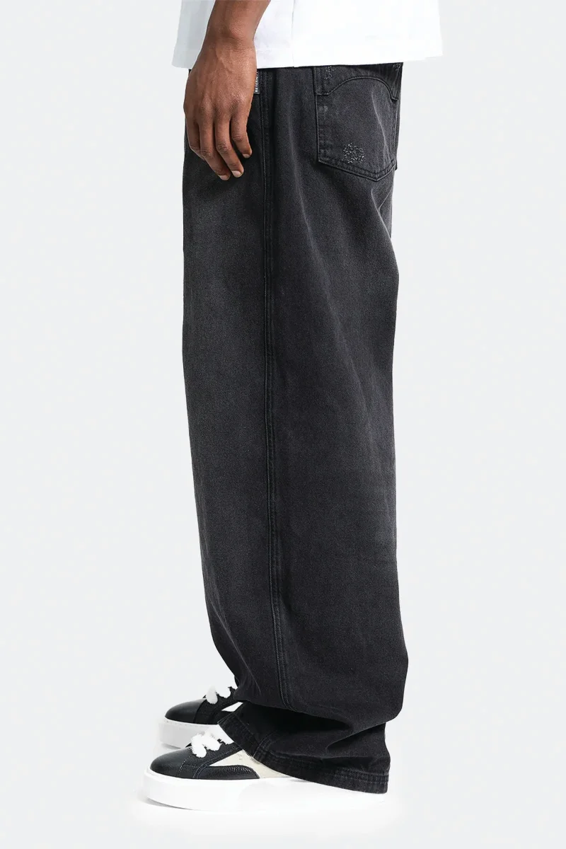 The Essential Baggy Denim is a piece made from high-quality black denim, cut in a beautiful baggy silhouette. Featuring distinctive acid washing and bleach effects, signe decorative stiching on the backpockets, and a YKK zipper on the fly. The famous signature metal hanger completes the product. Designed for everyday wear.