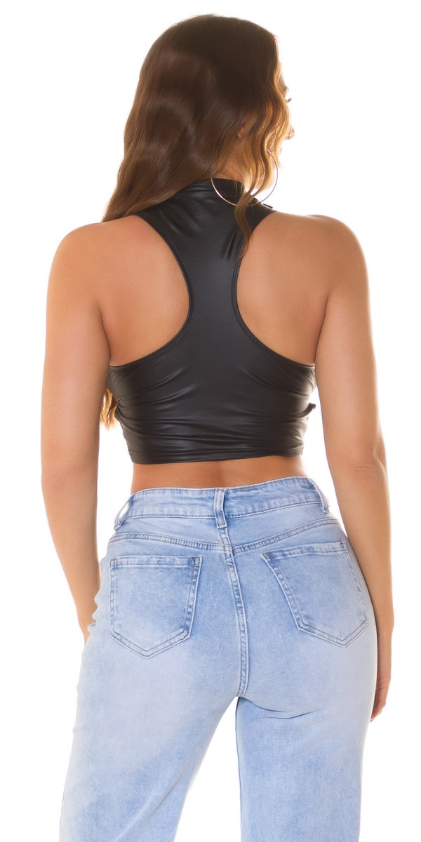 Abito corto a fascia in similpelle con cerniera AC611 nero