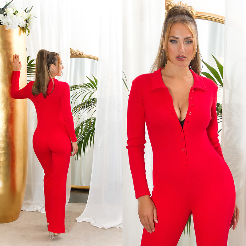 Tuta elegante con gamba larga e bottoni TT287 rosso