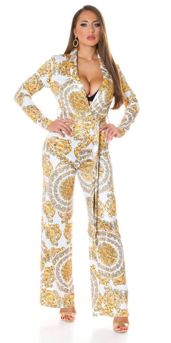 Tutaย Floreale , elegante e alla modaย . La tuta a unย tessuto elasticizzato. Ideale per una serata tra amici oย per una cena romantica.