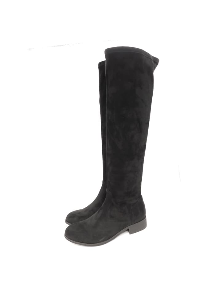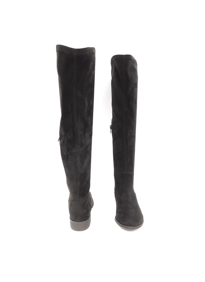 Stivale in eco suede elasticizzato con gambale alto al ginocchio. Mezza zip interna. Tacco 2 cm.