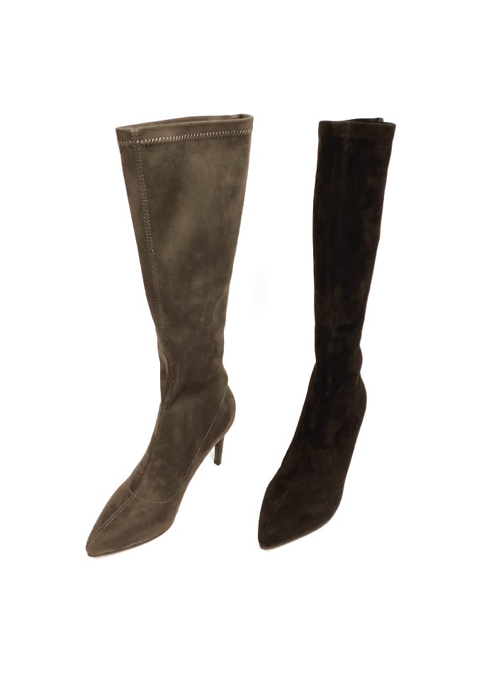Stivale in eco suede elasticizzato. Tacco a spillo 8 cm.
