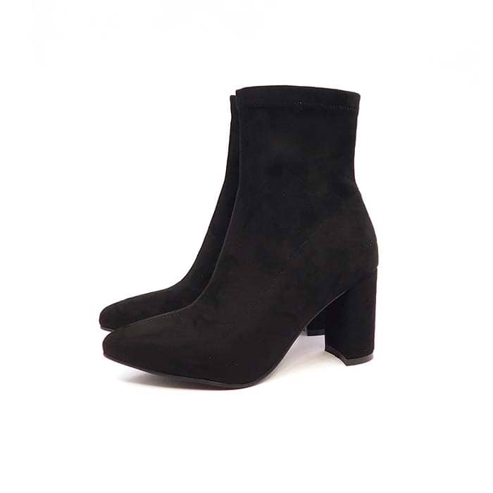 Tronchetto elasticizzato alla caviglia in eco suede nero. Tacco 7 cm.