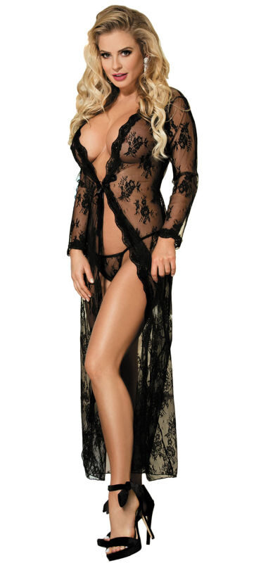 Vestaglia sexy di lunghezza media in tessuto trasparente con ricami floreali completa di perizoma. Taglia S/Mย veste dalla 38 alla 42