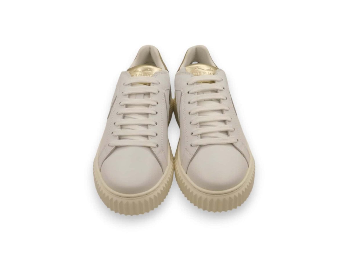 Sneakers in pelle lisciaย con inserti inย oro. Interno in pelle. Fondo in gomma zigrinata
